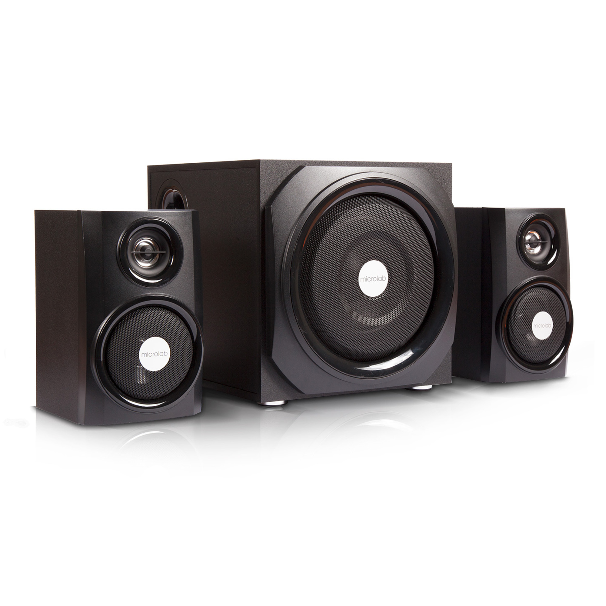Корпуса и сателлитов и сабвуфера выполнены из МДФ. Это положительно влияет и на практические свойства (колонки тяжелее своих пластмассовых конкурентов), и на качество звука. Приятной неожиданностью является наличие настоящих ВЧ динамиков (а не муляжей, как это часто делают для броского внешнего вида, но в угоду экономии). Диаметр ВЧ динамиков составляет 1,5 дюйма, СЧ – 3 дюйма. В сабвуфере же установлен НЧ динамик диаметров 5,25 дюймов.