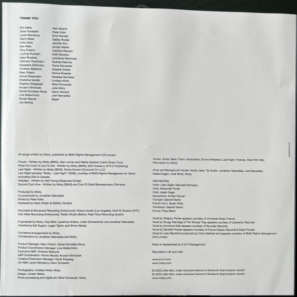 Этот альбом не просто сборник ремиксов: это история о взрослении, памяти и городских ритмах Нью‑Йорка, пропущенная через призму музыкальной зрелости Moby. В записи участвует звездный состав приглашённых вокалистов, таких как Gregory Porter, Nicole Scherzinger, Amythyst Kiah и Lady Blackbird, что делает каждую композицию уникальной и глубоко личной.