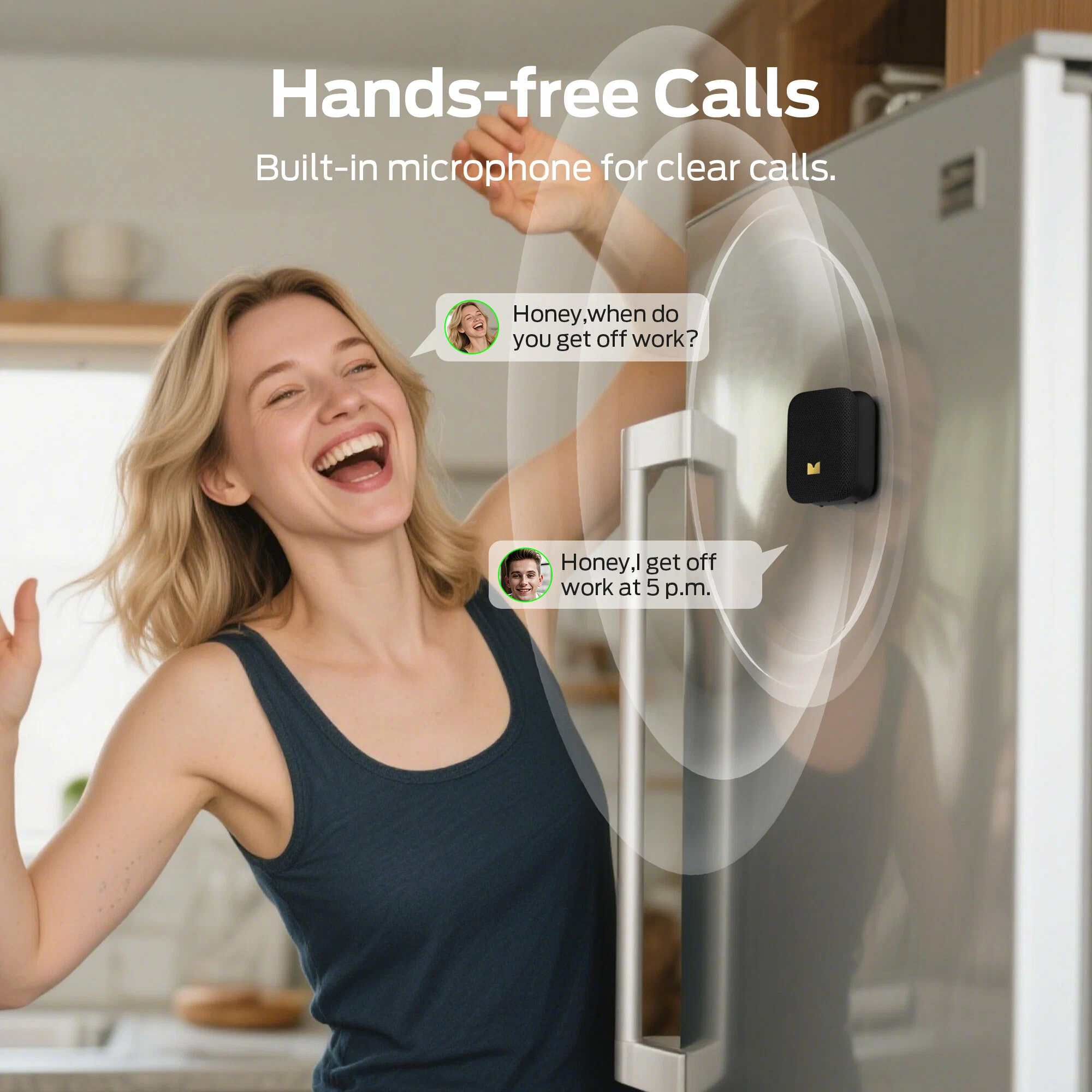 Monster Atomic Atom отличается эргономичной формой и встроенным магнитным зажимом, позволяющим прикрепить колонку к рюкзаку, одежде или металлической поверхности. Компактность делает её незаметной в сумке, а стильный внешний вид - эффектным аксессуаром, гармонирующим с любым образом.