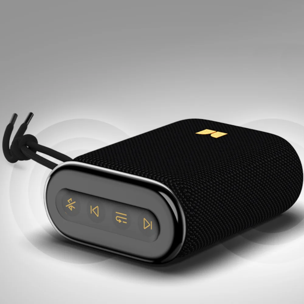 Элегантный, но функциональный дизайн делает колонку стильным аксессуаром. Корпус выполнен из плотной плетёной акустической ткани с водоотталкивающим покрытием, верхняя часть - из прочного термополиуретана (ТПУ), устойчивого к царапинам и механическим воздействиям. Компактные размеры и встроенный шнурок для переноски позволяют удобно брать колонку с собой, а силиконовое противоскользящее основание обеспечивает устойчивость даже на гладких поверхностях.