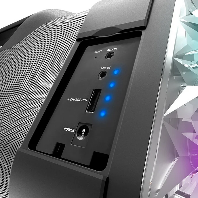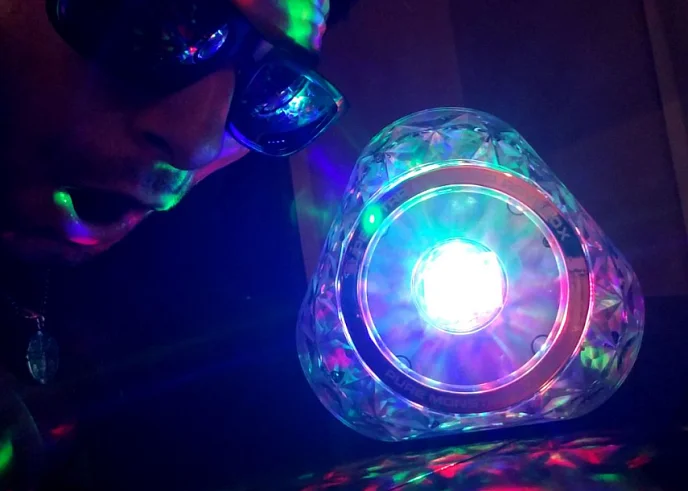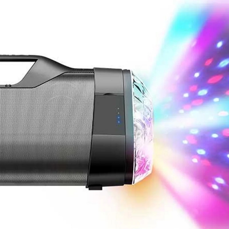 - Синхронизированное Световое Шоу. Начни вечеринку с калейдоскопом звука и зрелищного цветного света, который пульсирует синхронно с музыкой.