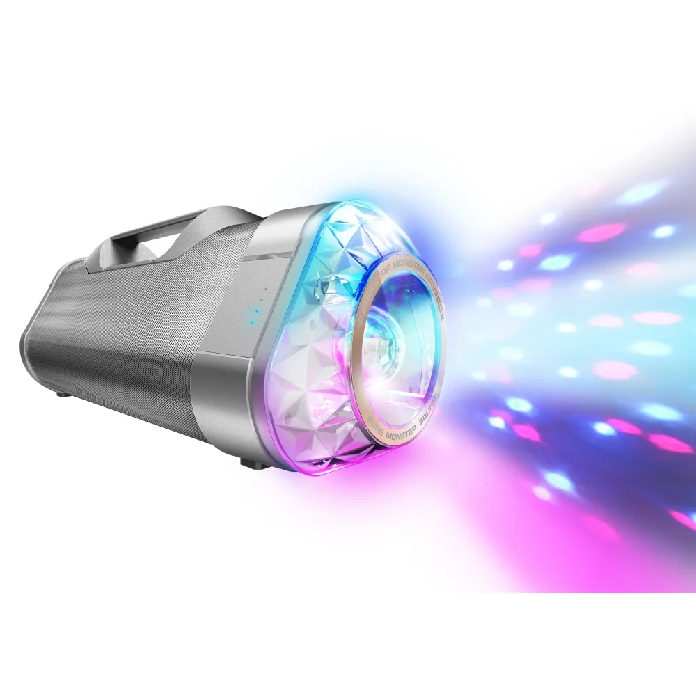 Monster Superstar RaveBox с ослепительным пульсирующим калейдоскопом светомузыки и технологией звука Pure Monster Sound позволит устроить танцевальный фестиваль, не выходя из дома!