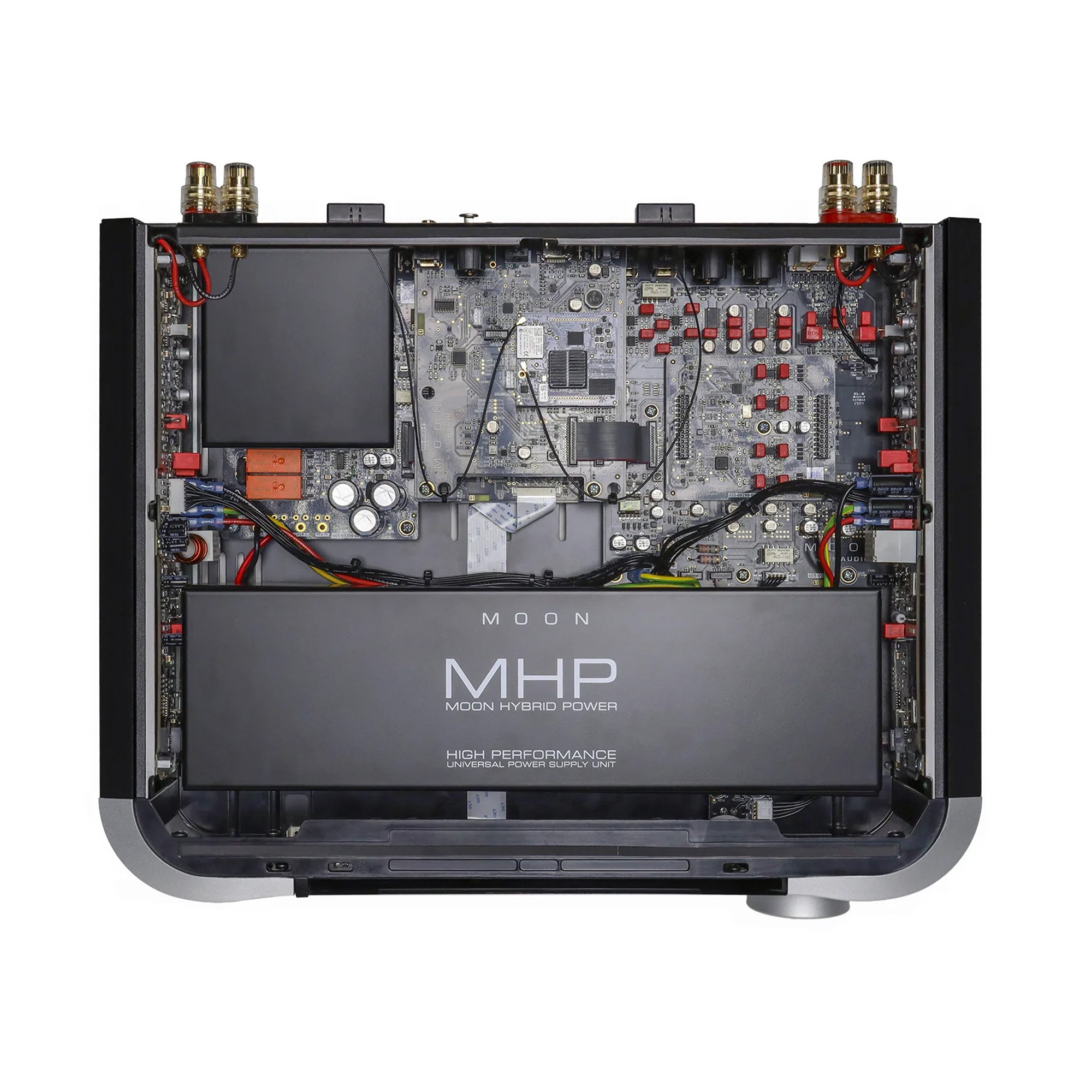 Moon 371 получил ключевые разработки коллекции North: гибридный блок питания MHP (Moon Hybrid Power supply), гарантирующий стабильность работы всех цепей, и систему подавления искажений MDCA (Moon Distortion Cancelling Amplifier), благодаря которой звук остается кристально чистым, динамичным и линейным.