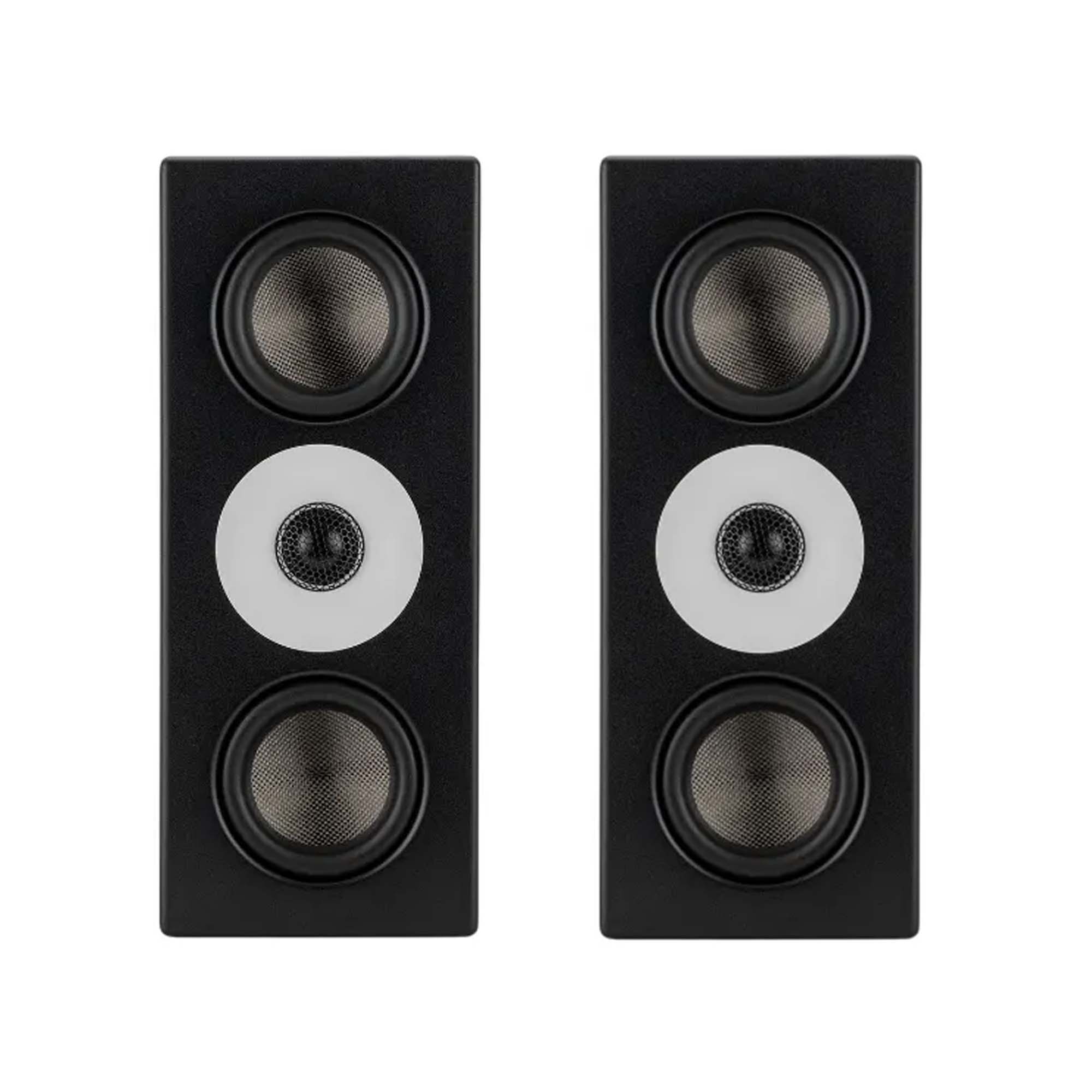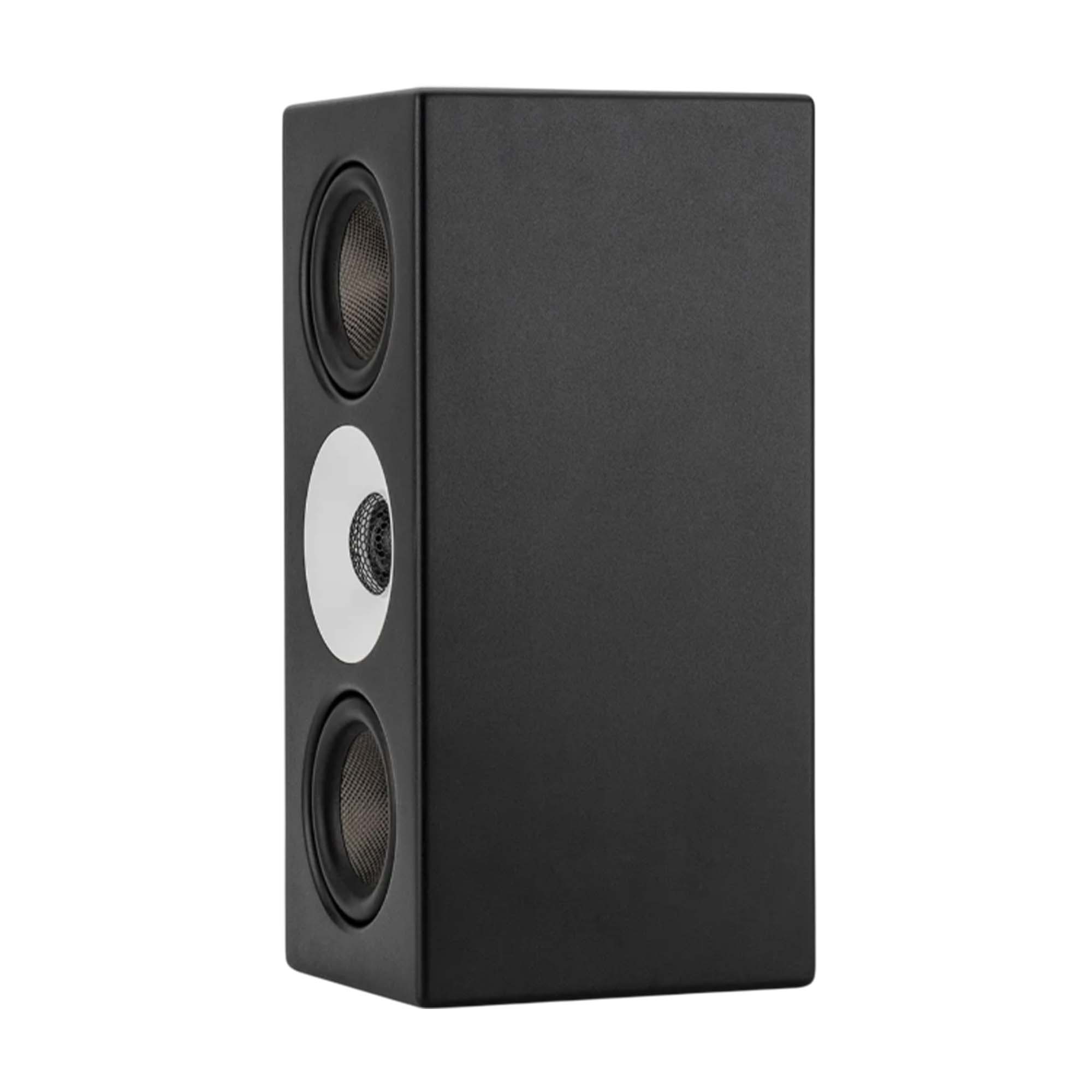 Корпус акустики выполнен из дерева и покрыт матовой текстурированной отделкой, доступной в чёрном и белом цветах. Такая отделка не только выглядит стильно, но и снижает вибрации и внутренние резонансы. Конструкция с симметричным расположением двух 87-мм мидбасов по обе стороны от центрального 25-мм твитера из алюминиево-магниевого сплава позволяет достичь широкой сцены, стабильной даже вне центральной оси прослушивания. Формат MTM даёт впечатляющую чёткость и «сфокусированность» звука в ближнем поле.