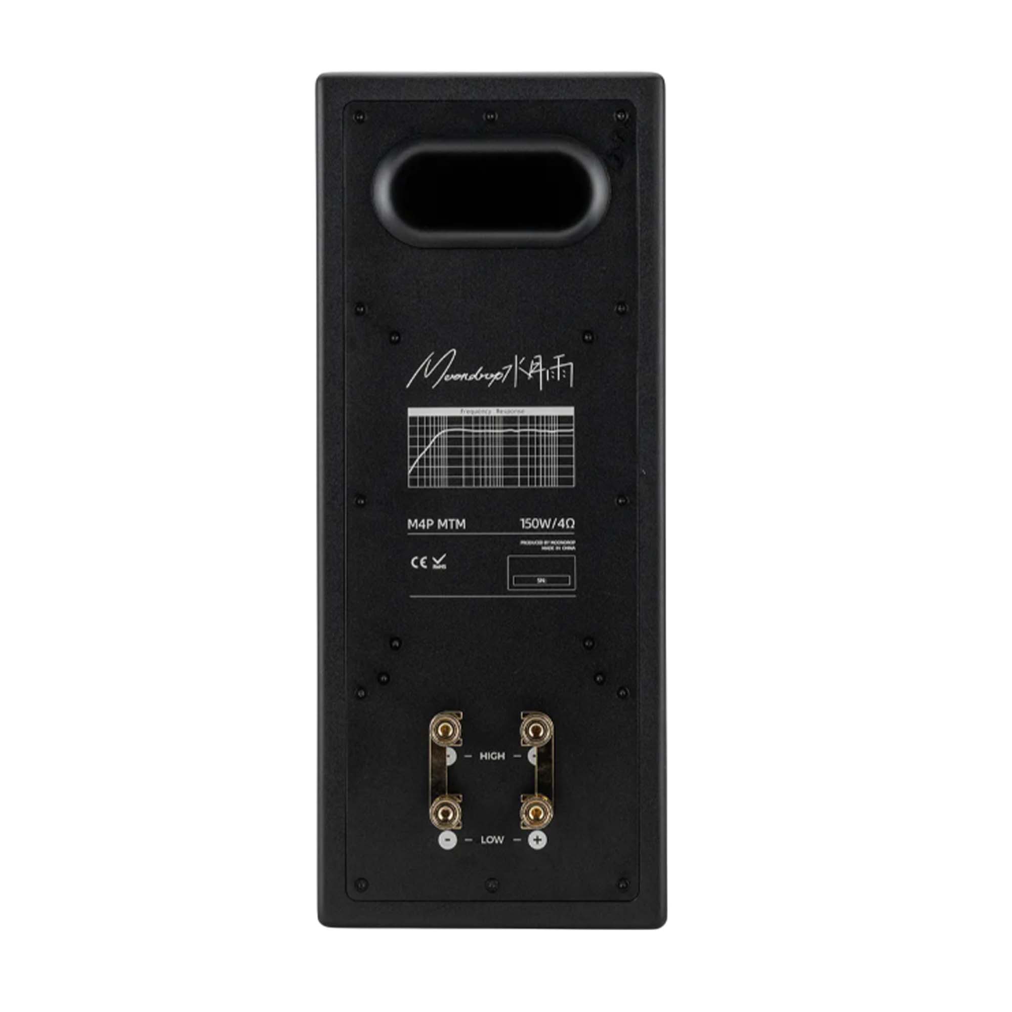 Несмотря на компактные размеры (около 38 см в высоту), Moondrop M4P MTM способна выдерживать нагрузку до 150 Вт, хотя номинально рассчитана на 75 Вт при сопротивлении 4 Ом. Для раскрытия её потенциала потребуется внешний усилитель, желательно с хорошей динамикой и контролем в нижнем регистре. На задней панели предусмотрены качественные клеммы с возможностью биампинга или подключения внешнего кроссовера.