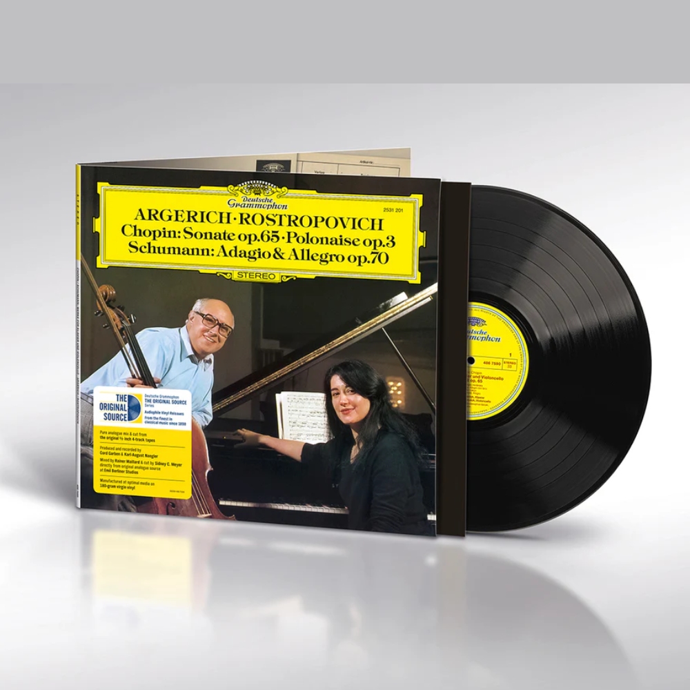 Эта пластинка не просто альбом, а подлинная жемчужина классической коллекции: на ней встречаются две легенды XX века, блистательная пианистка Марта Аргерих и величайший виолончелист Мстислав Ростропович, чьи дуэты запечатлели вневременную красоту камерной музыки.