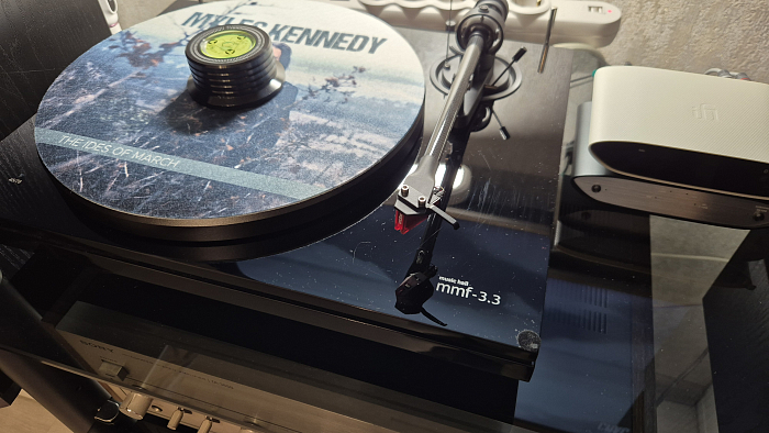 Проигрыватель винила Music Hall MMF 3.3 отличается двойным столом с тонармом и главным подшипником на верхнем ярусе и двигателем, проводкой и антивибрационными ножками — на нижнем. Производитель позиционирует MMF 3.3 как свой первый LP-проигрыватель начального уровня с двумя ярусами. Такая конструкция, по словам компании, качественно изолирует двигатель и электронику от подшипника и тонарма. Модель поставляется в полном комплекте с тонармом из углеволокна и картриджем Ortofon 2M Red. Также вместе с вертушкой идет пылезащитная крышка и адаптер для 45 об/мин.