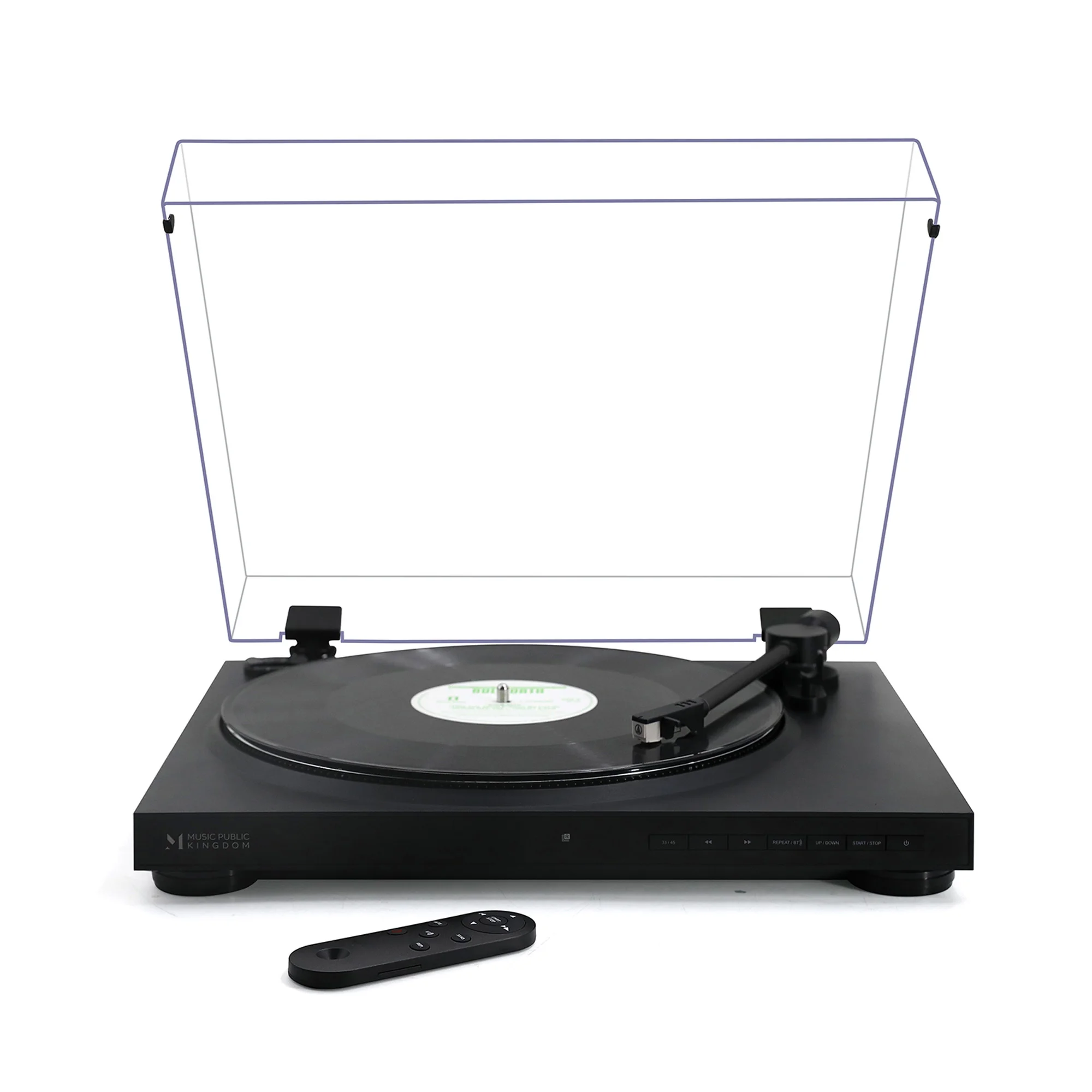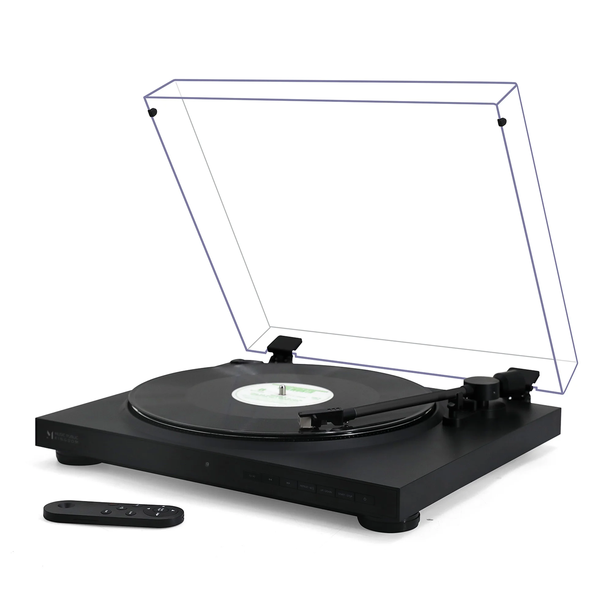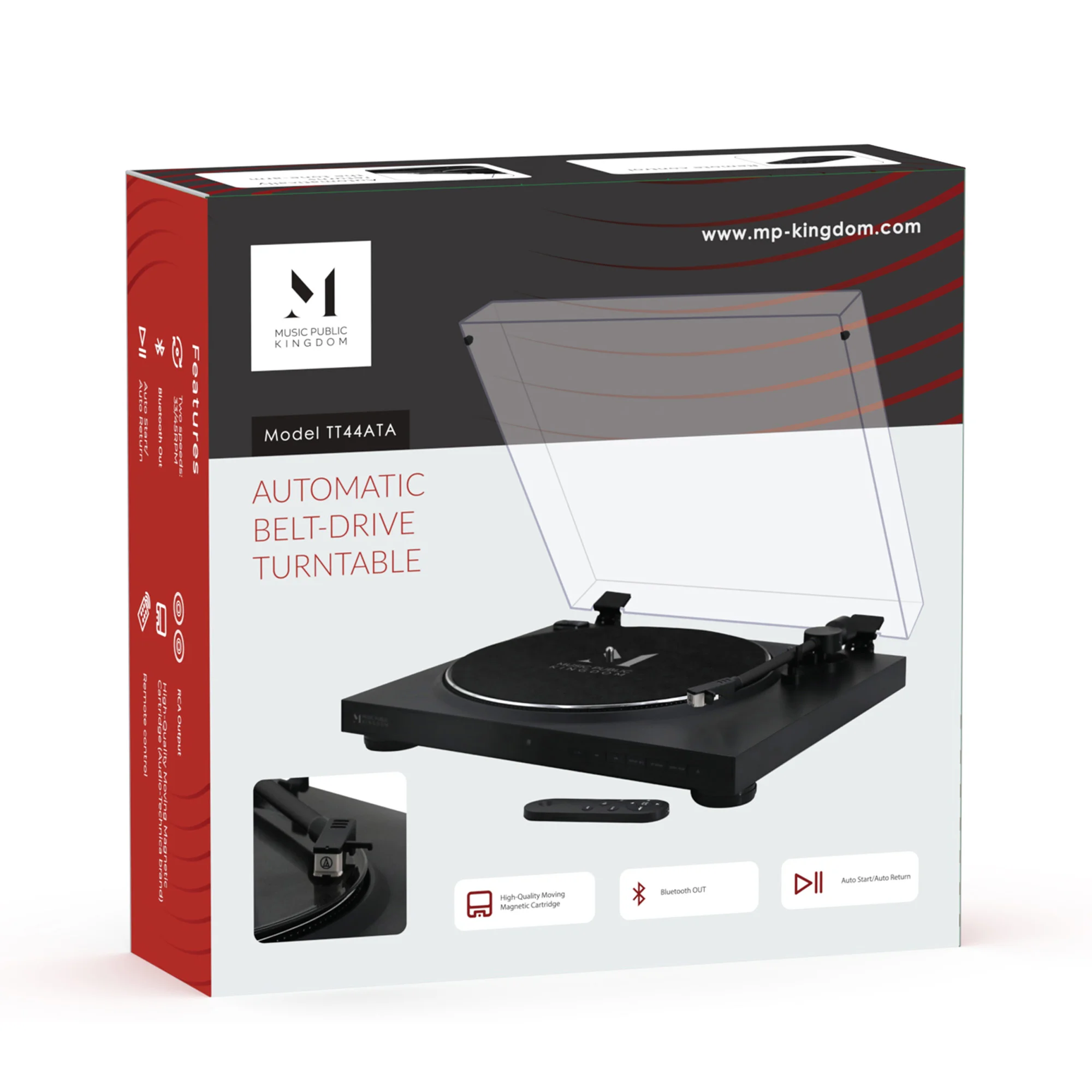 Основу винилового проигрывателя составляет ременной привод, гарантирующий стабильное и ровное воспроизведение звука. Алюминиевый опорный диск и тонарм обеспечивают стабильную и точную передачу звука с пластинок. Керамический картридж обеспечивает кристально чистое звучание. Проигрывателем можно управлять вручную, а также он поддерживает воспроизведение со скоростями 33, 45 оборотов в минуту (адаптер для 45 оборотов входит в комплект поставки). Оснащен встроенным фоноконнектором и звукоснимателем Audio-Technica, с двойным подвижным магнитом.