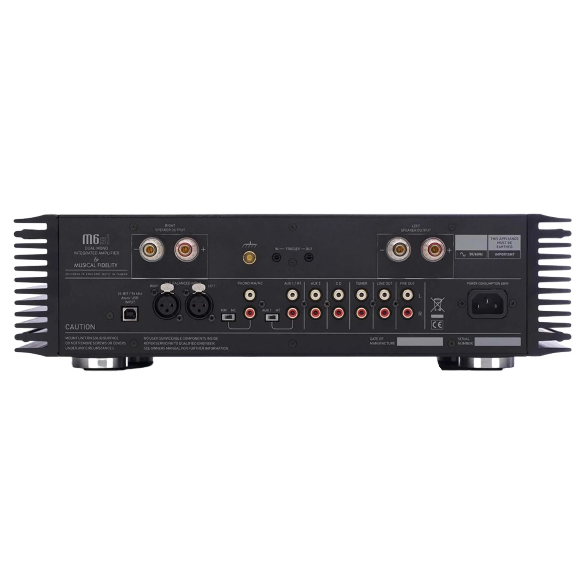 Интегральный усилитель Musical Fidelity M6SI, который является весьма улучшенной версией популярной модели M6i. При этом новинка имеет не только более совершенные характеристики, но ещё и повышенную функциональность. Аппарат развивает выходную мощность 2 × 220 Вт на 8-омной нагрузке, а параметры THD+N и SNR составляют 0.007% и 107 дБ соответственно.