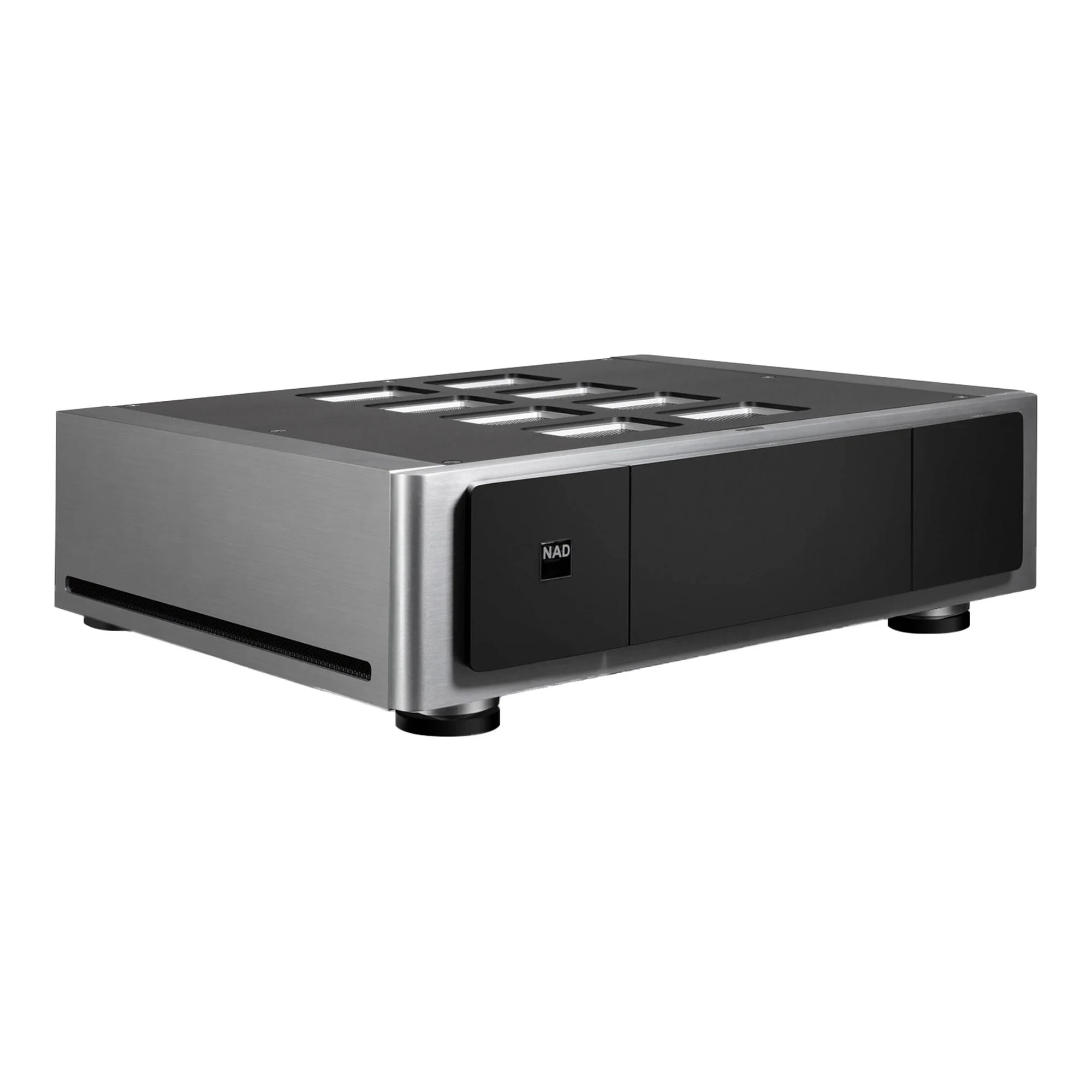 Гибридно-цифровой стереоусилитель мощности Masters M23 с элегантным корпусом из цельного сплава радует глаз не меньше, чем слух. M23 обладает тем же качеством конструкции, которым славится серия Masters компании NAD. Жесткие панели и магнитные изотопные ножки обеспечивают прочную основу для многослойных печатных плат и сложной внутренней конструкции M23. Поистине M23 представляет собой новую вершину в дизайне усилителей мощности.