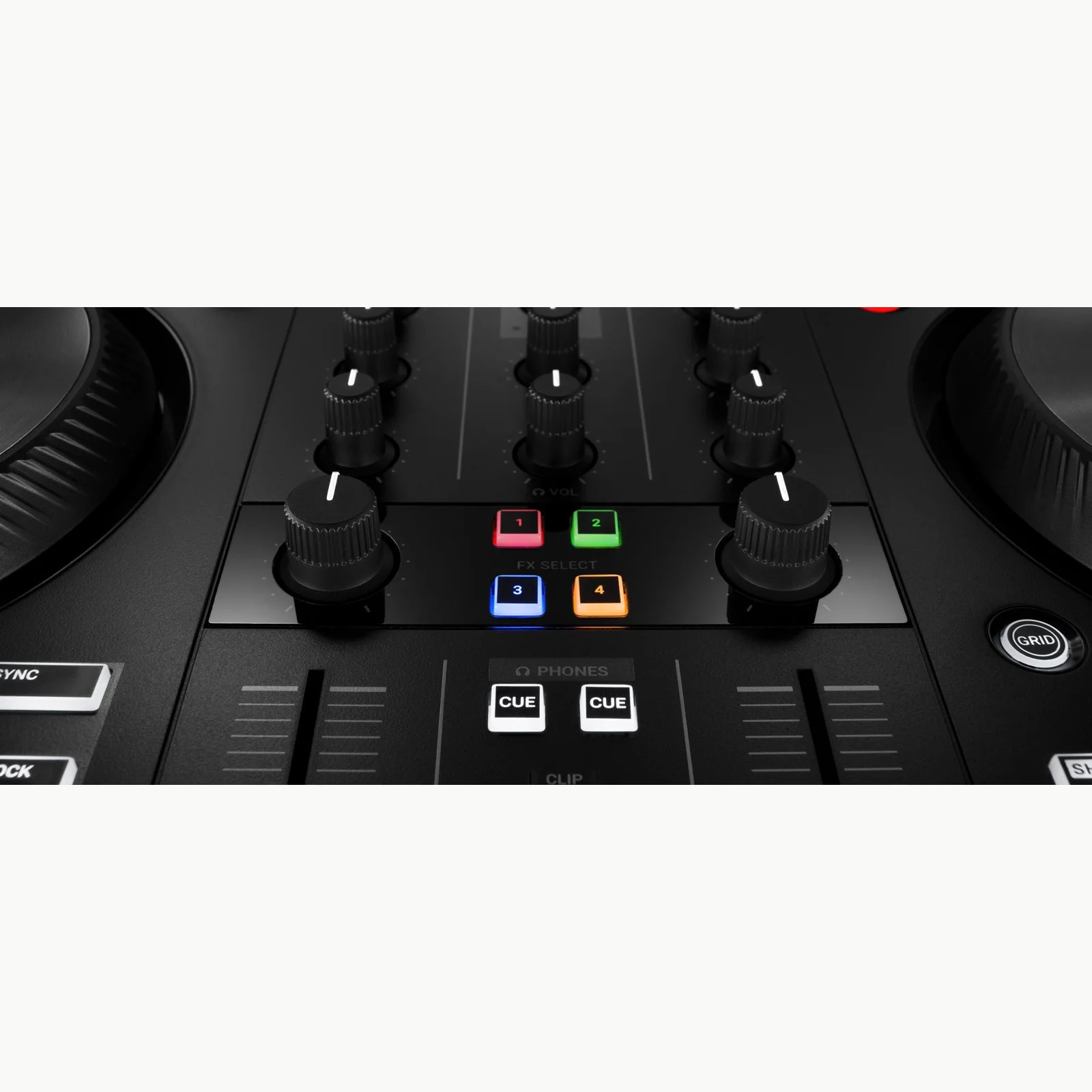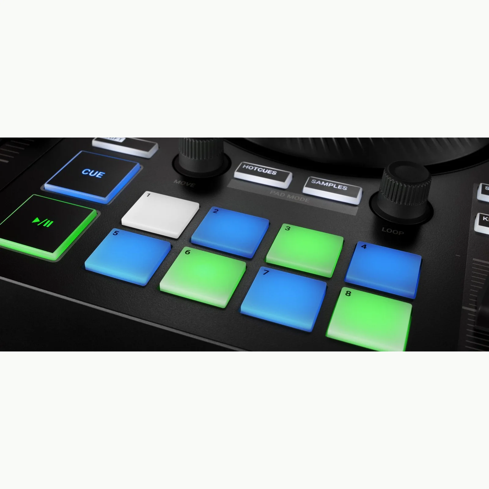 Главной отличительной чертой данного двухканального DJ-контроллера является наличие двух джогов по 14 см. Теперь они оснащены более продвинутой механикой, которая обеспечивает наилучшие тактильные ощущения, делает джоги более отзывчивыми, а также даёт возможность работы в одном из двух режимах: сенсорном и обычном. Каждая из дек имеет по 8 пэдов с RGB-подсветкой, которые способны функционировать в режимах Hotcue и Samples. Также присутствуют стандартные клавиши Play и Cue, кнопки и регуляторы для навигации и фейдер для подстройки темпа. Появились интересные функции REV и FLUX, позволяющие реверсировать аудиодорожку и оперативно вернуть её в прежнее направление.
