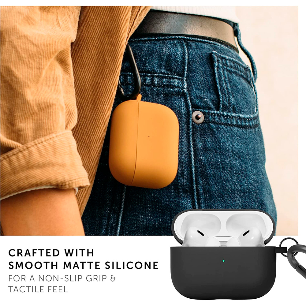 Путешествуйте везде со своими AirPods Pro с минималистичным легким футляром, изготовленным из мягкого жидкого силикона, дополненным матовым алюминиевым зажимом, который прикрепляется к любой сумке или ремню для удобной переноски.