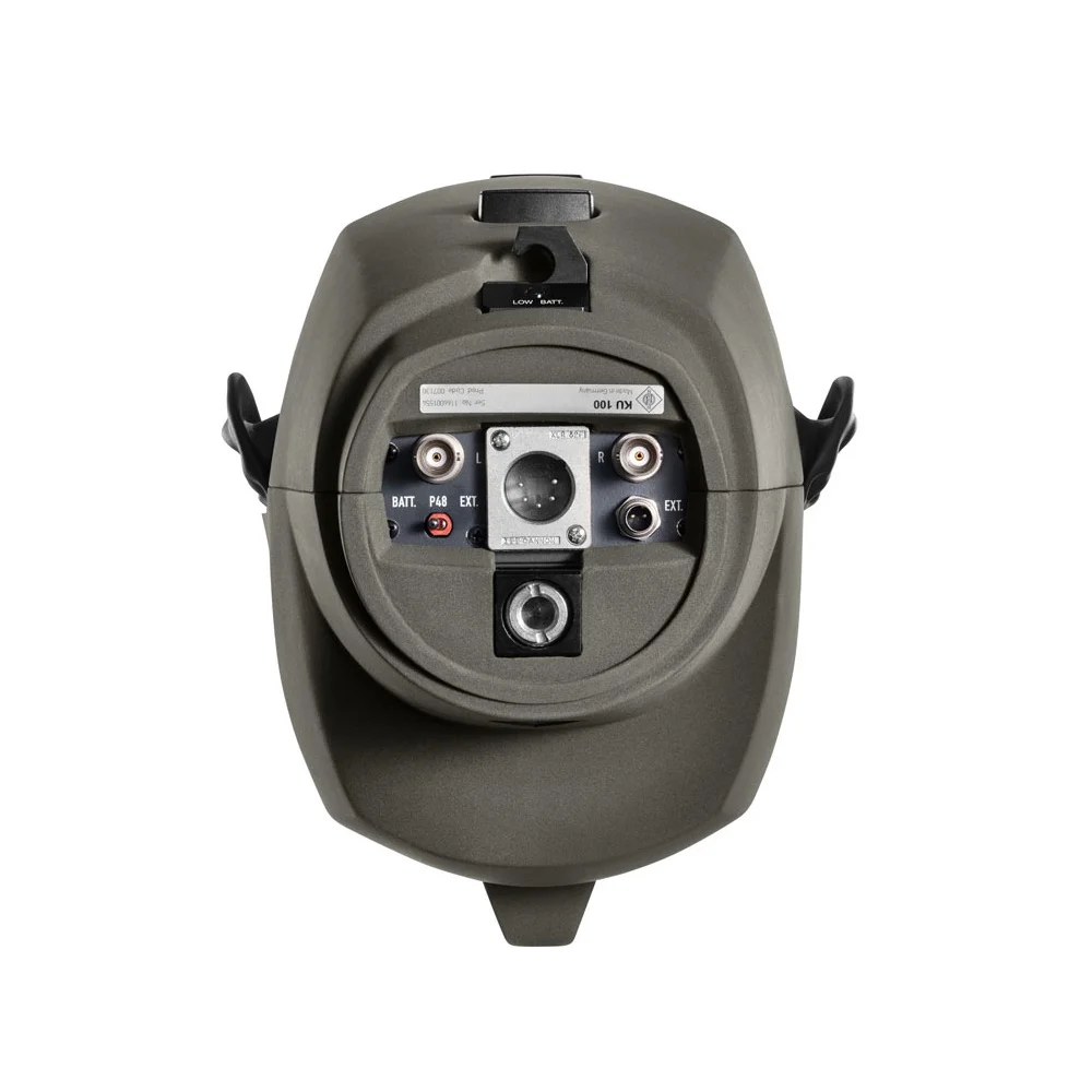 KU 100 может работать с типичными 48 В питанием, либо от внешнего блока питания или от встроенного аккумулятора. В нижней части устройства переключатель для различных режимов питания, а также разъемы для сбалансированных и несбалансированных выходных сигналов. Внутри головы дополнительные переключатели для 10 дБ и ослабление ВЧ-фильтра. Голова манекена также внесла свой вклад по существу, как важный инструмент для сохранения природных звуков всех видов. Кроме того, манекен голова часто используется, чтобы исследовать и документировать влияние шума в промышленных приложениях на разных рабочих мест в реальных условиях.