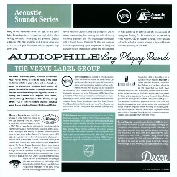 Эта виниловая классика не просто переиздание легендарного альбома 1965 года, но настоящая звуковая магия для ценителей музыки. В серии Acoustic Sounds original‑аналоговые ленты были мастерски ремастированы и отпечатаны на тяжелом 180‑граммовом виниле, чтобы передать всю глубину эмоций и нюансов исполнения великой Nina Simone.
