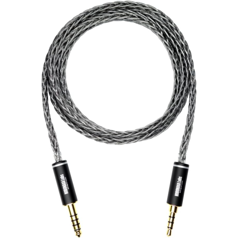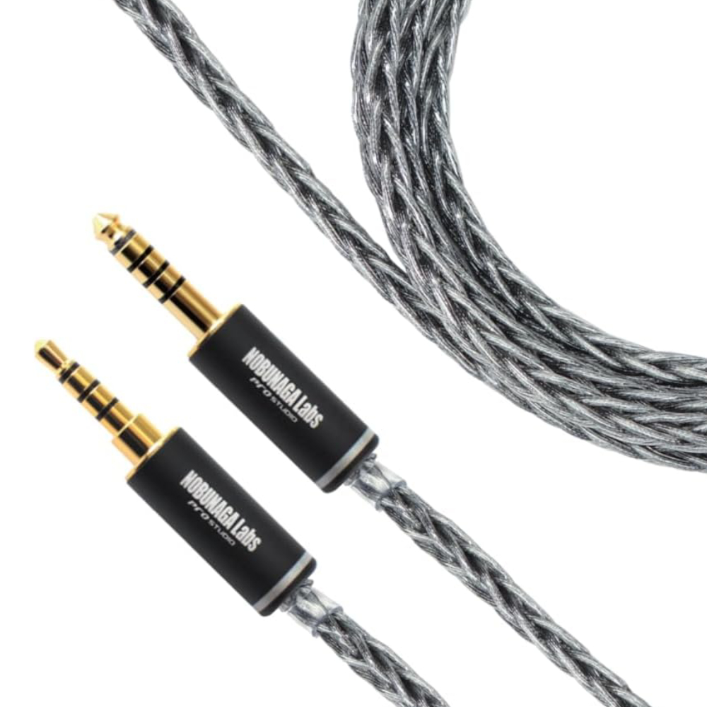 Кабель оснащён пятиконтактным 4.4 мм штекером и четырёхконтактным 3.5 мм коннектором с позолоченными контактами, обеспечивающими надёжную передачу сигнала без потерь. Специальное антикоррозийное покрытие предотвращает окисление и отслаивание, гарантируя долговечность. Корпус разъёмов выполнен в фирменном матово-чёрном дизайне Nobunaga Labs, подчёркивающем элегантность и японскую сдержанность.
