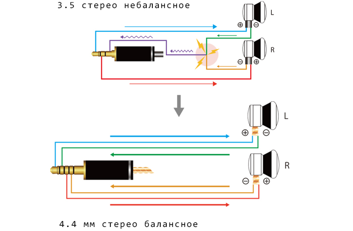 Сбалансированное соединение используют чтобы подавить перекрестные помехи до предельного порога, обеспечивая более точную локализацию и пространственное выражение. Конструкция 4-жильной оплетки предназначена для максимального эффекта сбалансированного соединения.