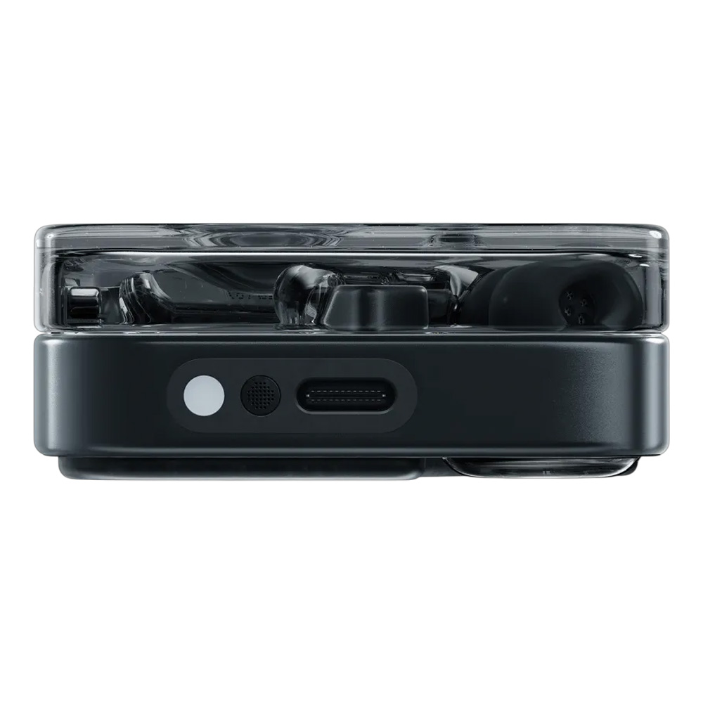 После бесчисленных сканирований ушей и тестов инженеры определили оптимальную посадку. Эргономичные дужки легко сидят в ухе, система вентиляции снижает давление, а мягкие силиконовые насадки плотно прилегают к уху Ear (3), но не натягивают его. Слушайте весь день и слушайте только свою музыку. Nothing использовали нанотехнологии для литья под давлением, чтобы изготовить основание футляра из переработанного алюминия и соединить его с прозрачной крышкой. В результате вы получите футляр, который удобно лежит в руке, приятно смотрится и достаточно прочен, чтобы ваши наушники были в безопасности.