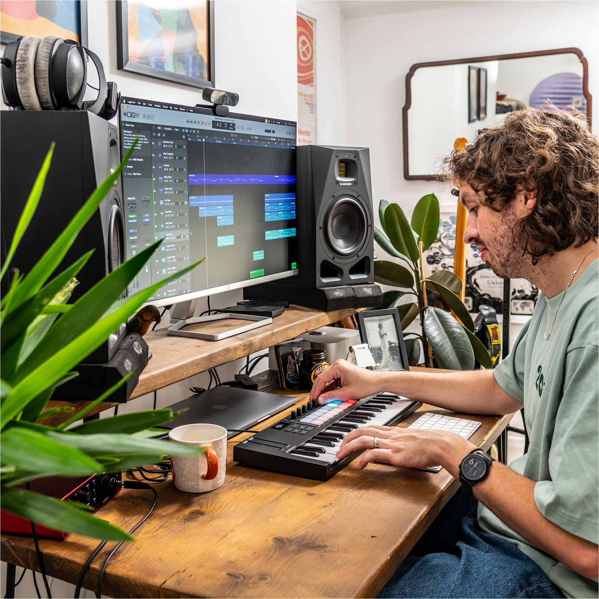 Launchkey Mini 37 - это компактный и мощный контроллер DAW, оснащенный набором встроенных средств создания музыкального контента. Каждый аспект разработан таким образом, чтобы усилить ваш творческий поток: от мини-клавиатуры в синтезаторном стиле и 16 пэдов с полифоническим последействием до панели управления, которая обеспечивает интуитивно понятную интеграцию с DAW.