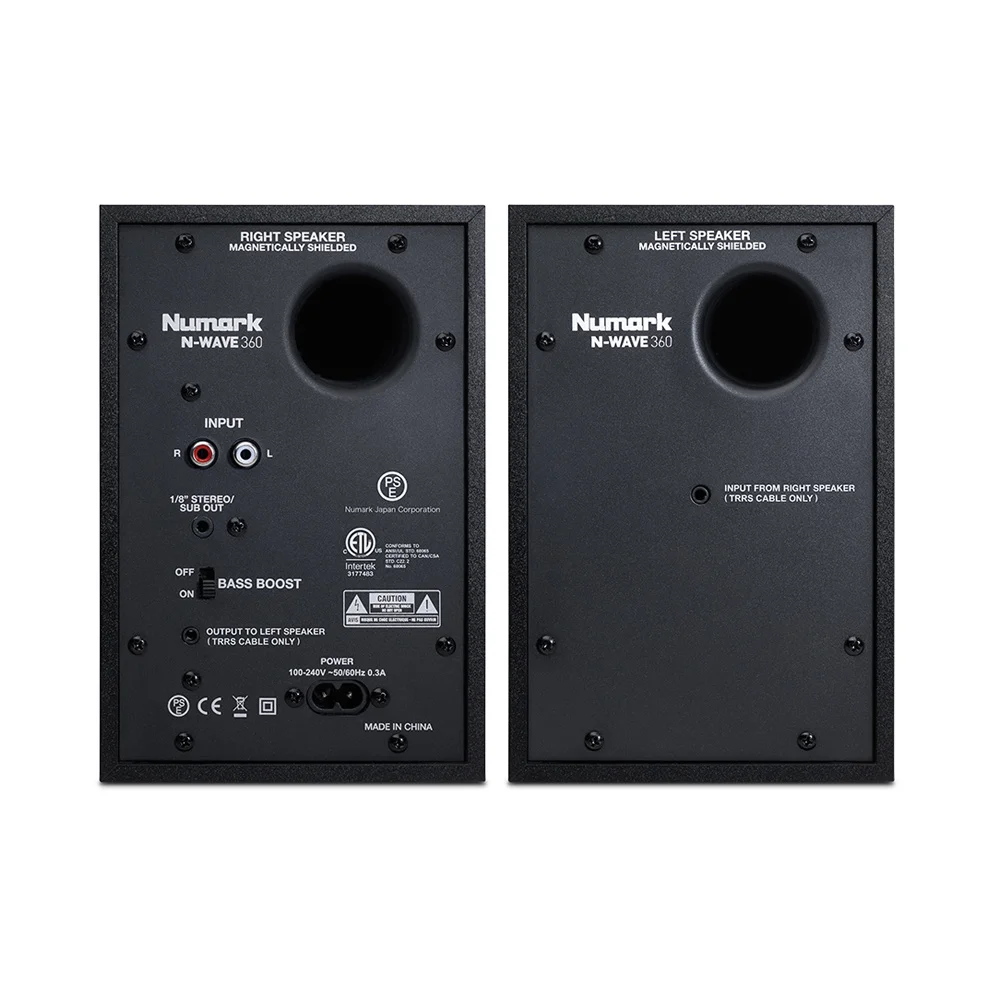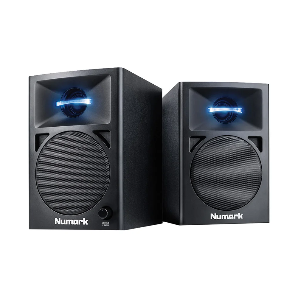 NUMARK N-Wave 360 – компактные настольные двухполосные мониторы от известного производителя, предназначенные в первую очередь для ди-джеев. В комплект входят две колонки. Модель оснащена усилителем мощностью 60 Вт. Она отличается очень естественным звучанием, она может быть использована в домашней студии, при этом цена её достаточно демократична. В конструкции акустической системы применяется высококачественный 3-дюймовый низко/средне-частотный динамик в сочетании с 1-дюймовым купольным твитером с оригинальной светодиодной подсветкой синего цвета.