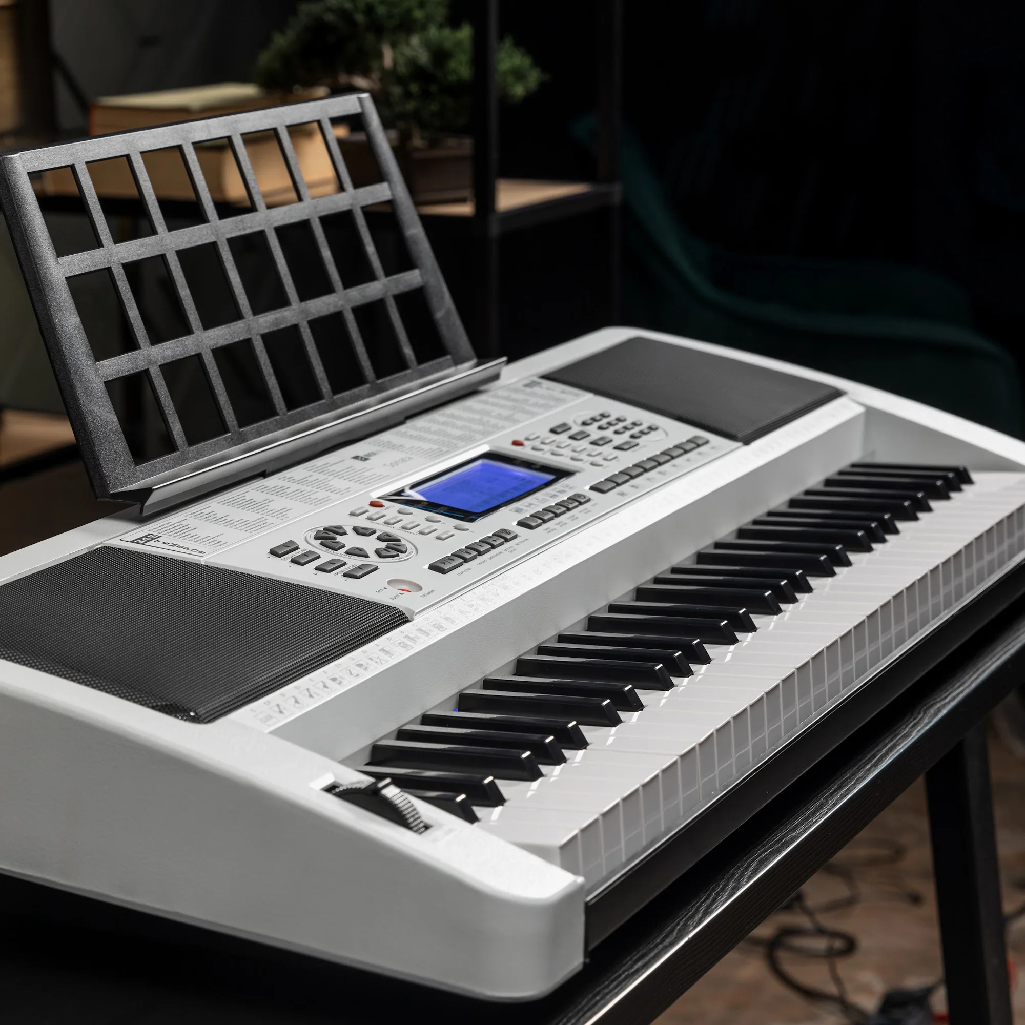 Синтезатор профессиональный предлагает широкий диапазон звуков и стилей: 345 тембров, 128 ритмов, 65 демо-мелодий. Его MIDI-функции позволяют подключать его к компьютерам и другим устройствам, что открывает дополнительные горизонты для создания и редактирования музыки. Музыкальный инструмент идеально подойдет для записи, написания композиций и живых выступлений. Независимо от стиля музыки, вы сможете легко настроить звук под свои впечатления и предпочтения.