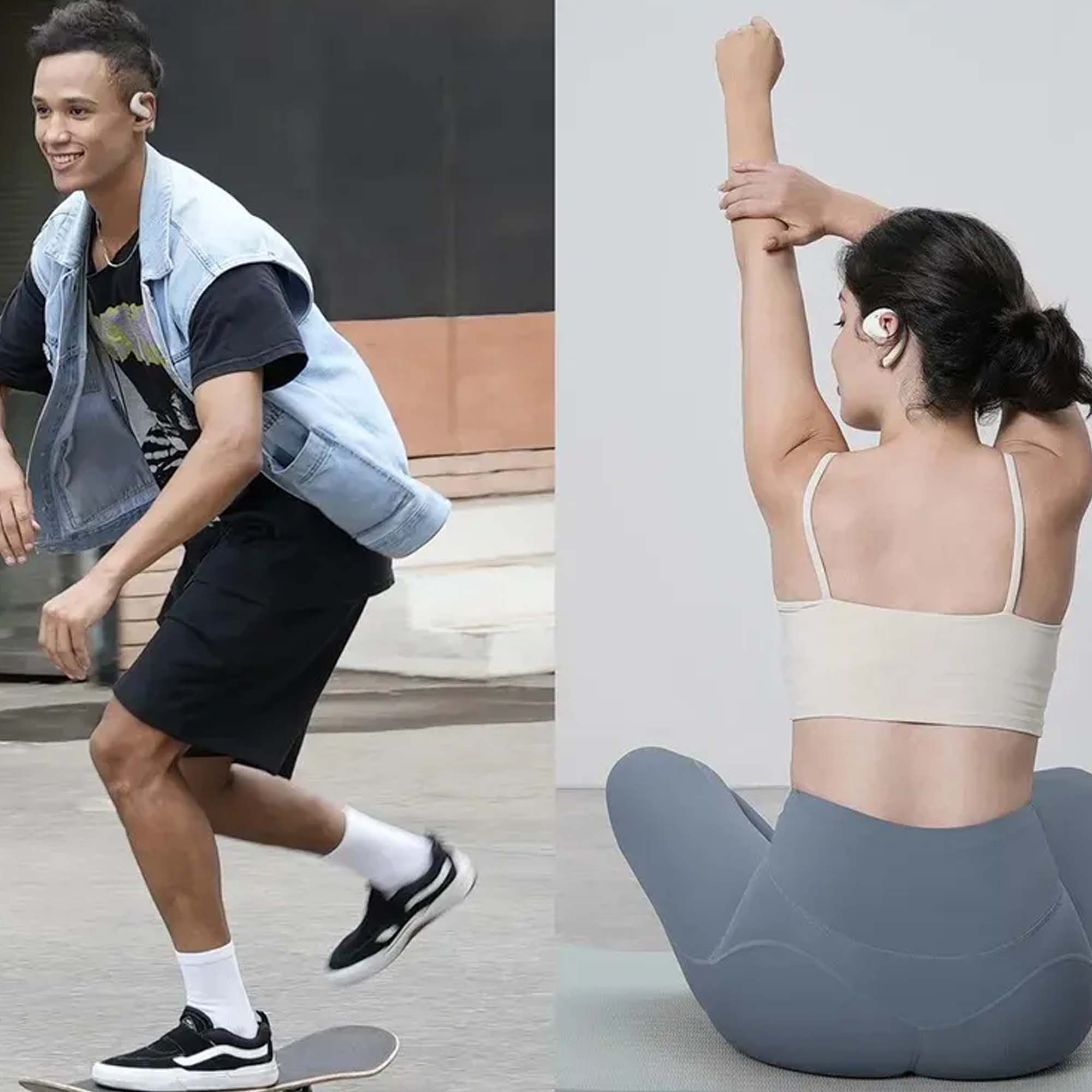 Беспроводные наушники Oneodio OpenRock S имеют корпус с эргономичной формой и удобной широкой заушиной для крепления. Обратите внимание на посадку наушников — слуховой канал остается открытым, то есть вы слышите все вокруг. Это дает возможность быть внимательным во время занятия и реагировать на обстановку. И в отличие от наушников костной проводимости, данная модель достаточно хорошо звучит.