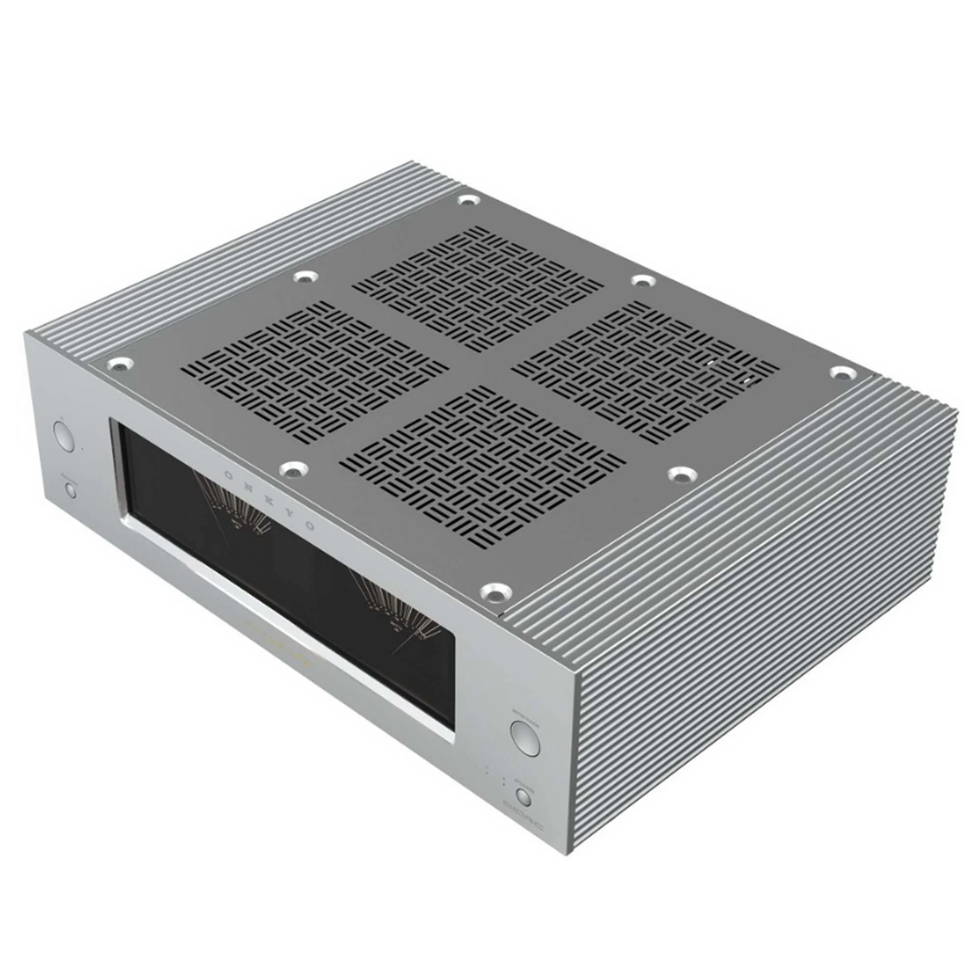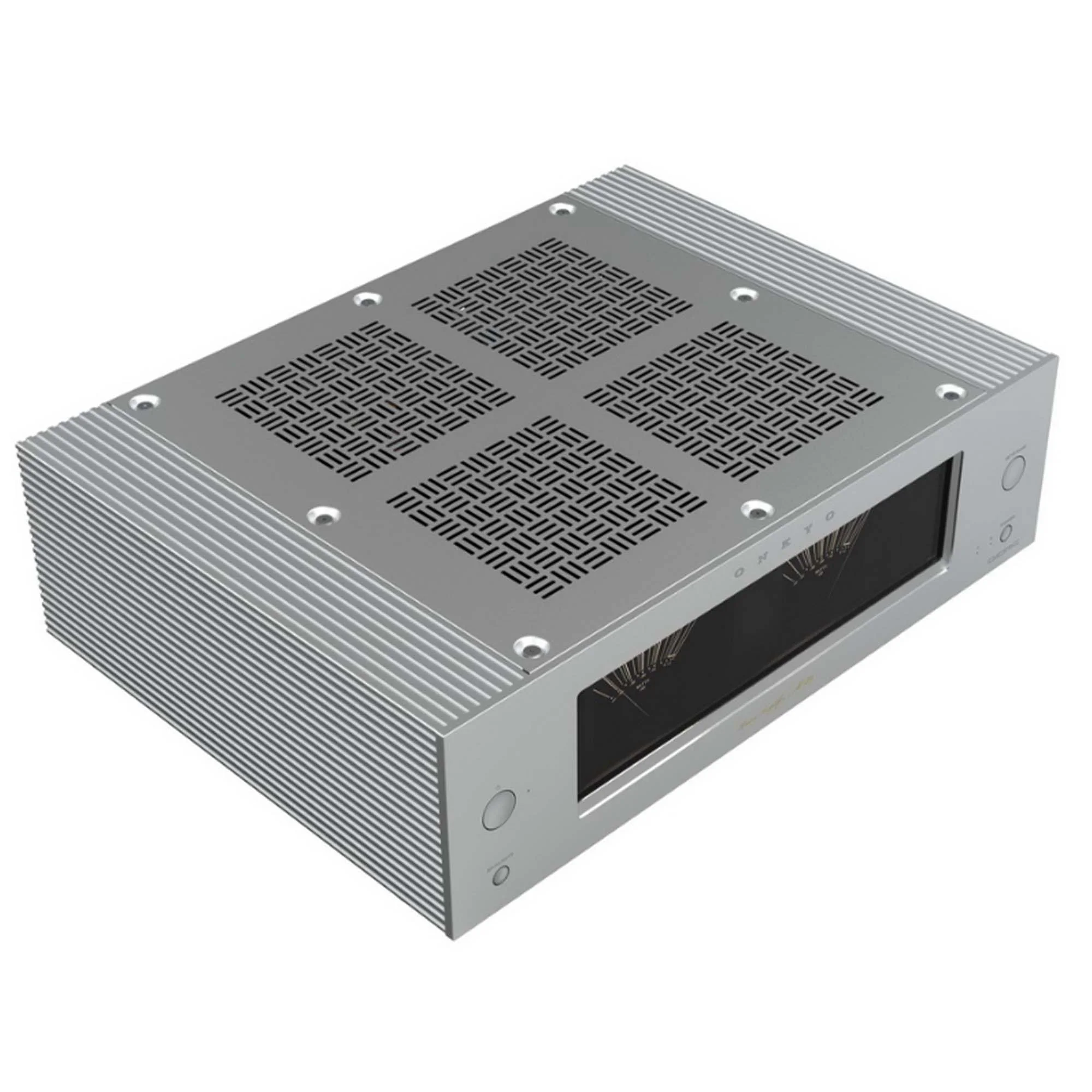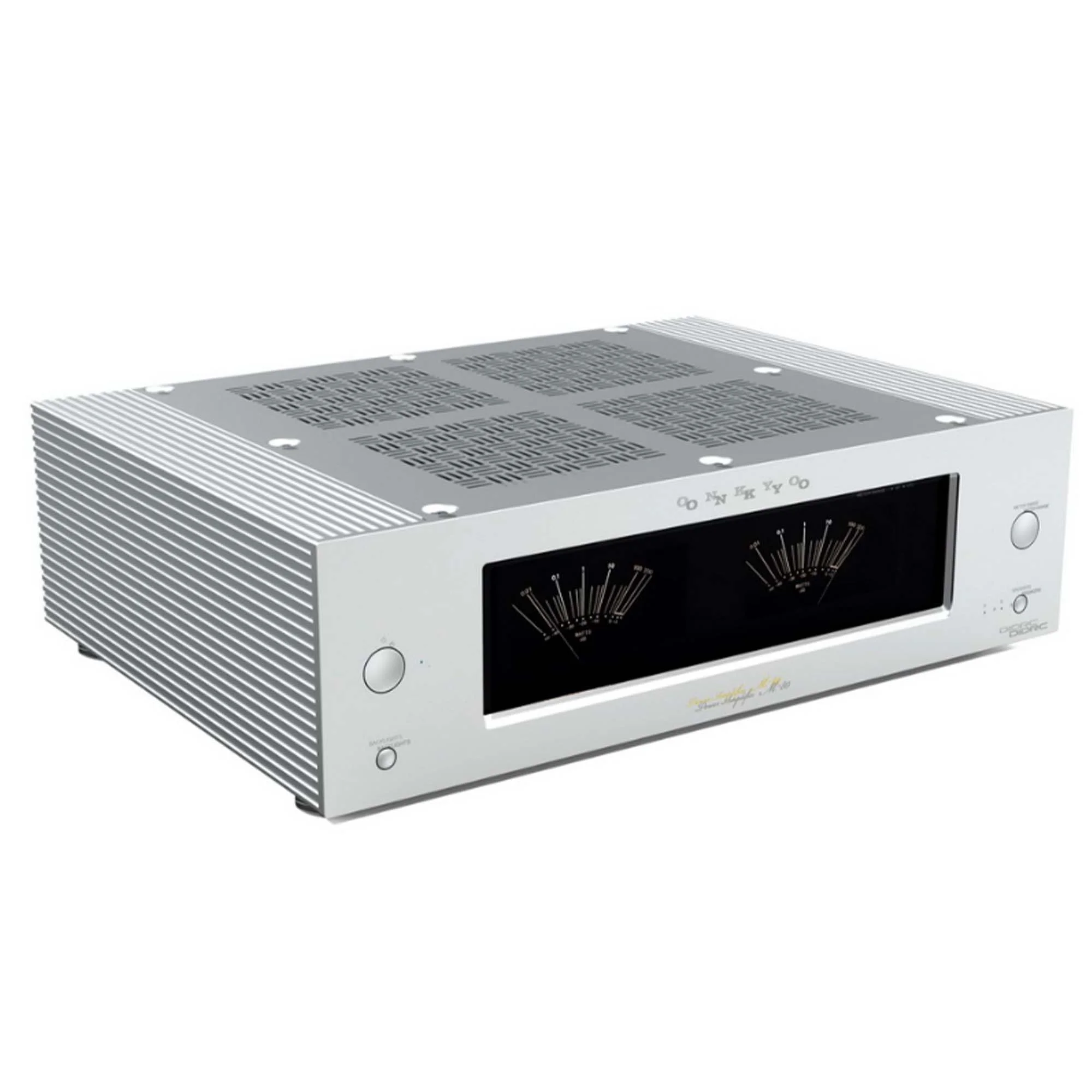 Усилитель мощности M-80 построен по симметричной схеме класса AB и выдает 150 Вт на канал при 8 Ом или 200 Вт при 4 Ом. Он оснащен трехступенчатым выходным каскадом с инвертированной схемой Дарлингтона и фирменной технологией DIDRC для снижения искажений. На передней панели M-80 расположены эффектные VU-метры.