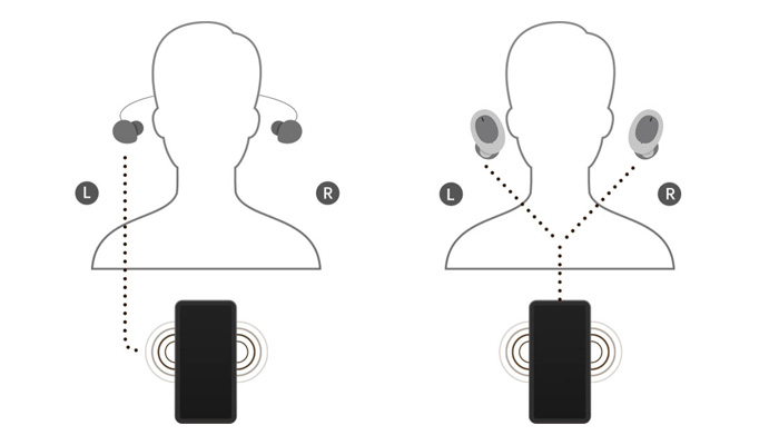 Вместо того, чтобы передавать сигнал на один наушник и затем направлять его на другой, W11 передают сигнал на оба наушника одновременно. В результате задержка ниже, а соединение стабильнее.