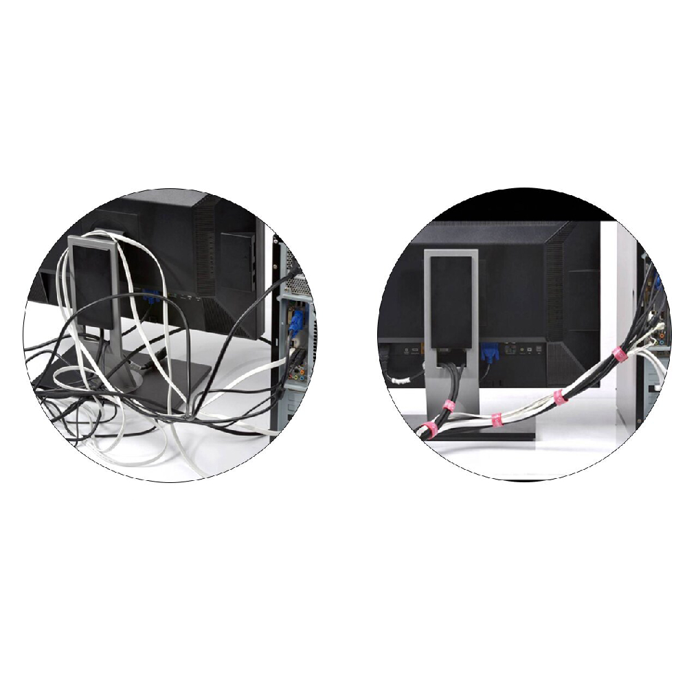 Аккуратно собранные кабели делают рабочее место организованным и привлекательным. Минималистичный дизайн и чёрный цвет стяжки гармонично впишутся в любой интерьер — будь то офис с современной техникой или домашний компьютерный уголок.