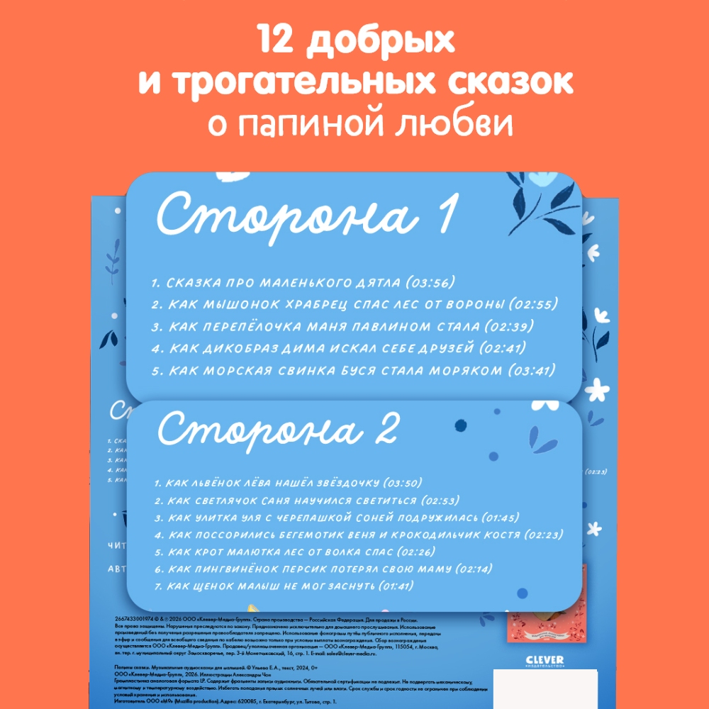 На пластинке собраны 12 добрых и трогательных сказок о заботе, поддержке и безусловной любви. Герои этих историй учатся не бояться трудностей, верить в себя, дружить, помогать близким и понимать собственные чувства. Маленький слушатель узнает, что папа всегда рядом когда страшно, когда грустно, когда что-то не получается или, наоборот, когда хочется поделиться радостью.