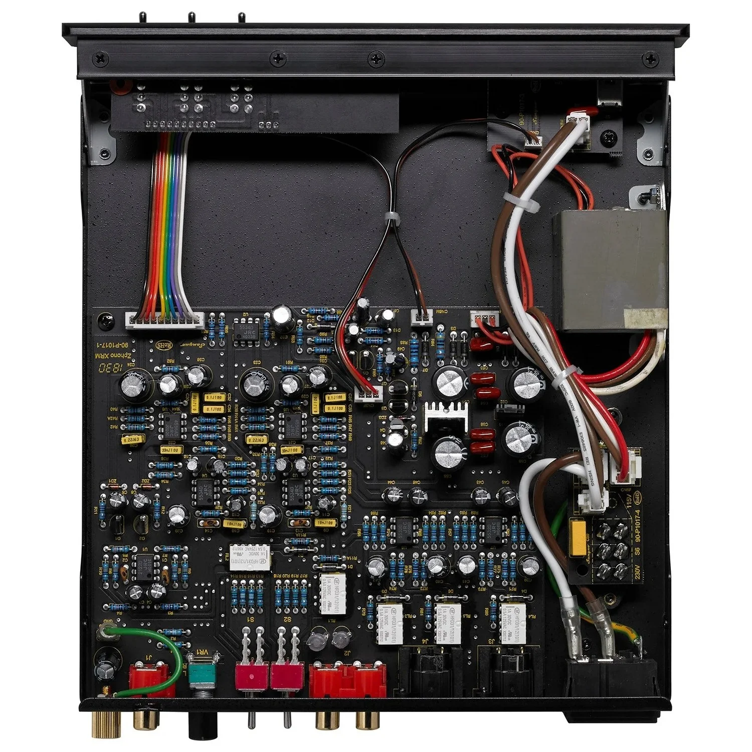 На его борту расположились две пары RCA разъемов для входного и выходного подключения и переключатель с выбором типа подключенного картриджа: MM или MC. Для работы с каждым типом картриджей предусмотрены независимые схемы.
