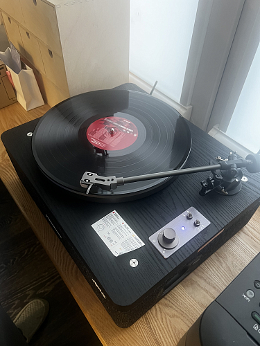 Проигрыватель развязан от колонок и создаваемых ими вибраций, что обеспечивает более точное воспроизведение пластинок.