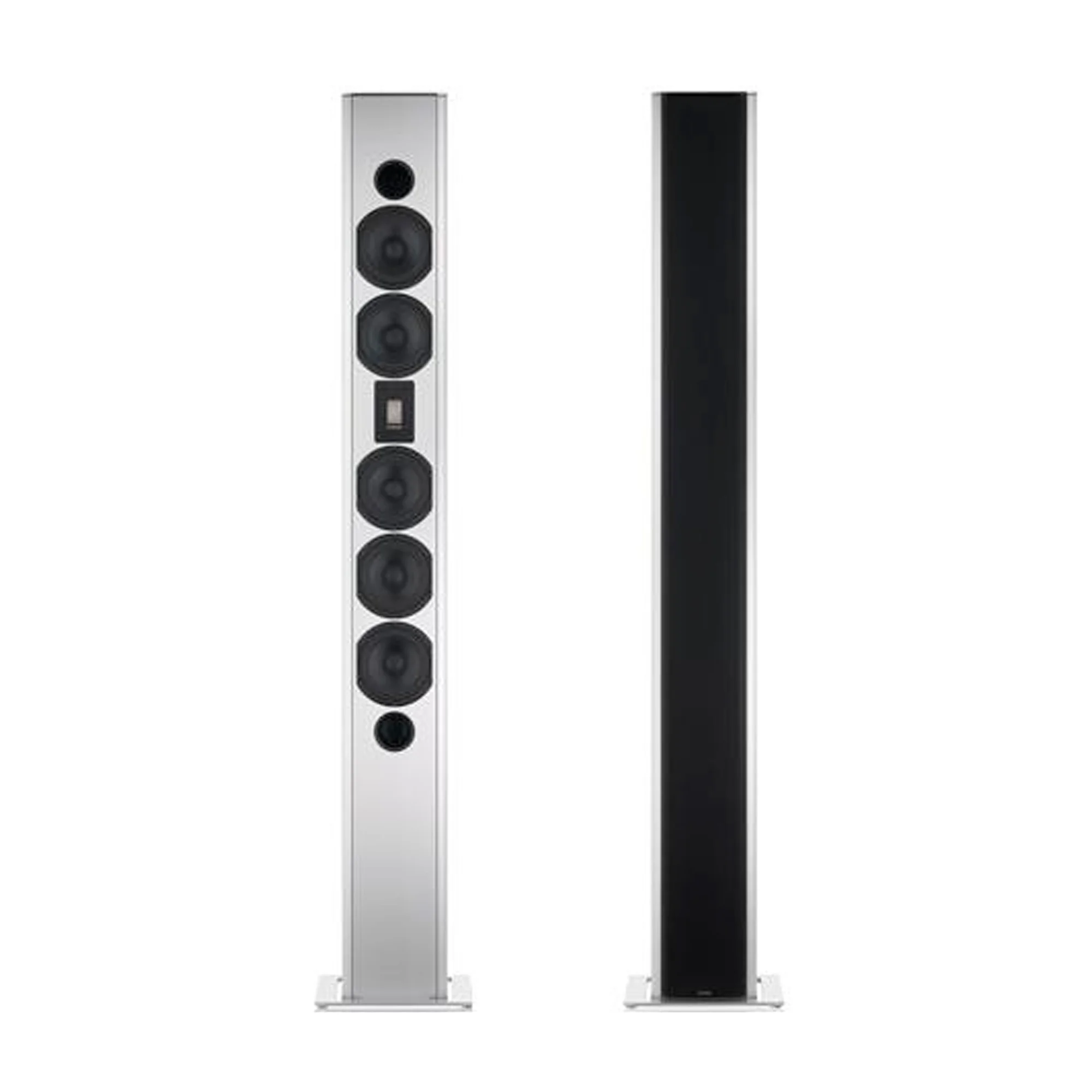 Акустическим оформлением выбран фазоинвертор с передним выводом портов, расширяющий нижнюю границу до 30 Гц. Верхняя полоса отдана уже привычному для акустики этой марки ленточному твитеру LDR с расширенной до 50 кГц рабочей полосой. Для лучшей дисперсии излучения топология всех динамиков максимально симметрична.