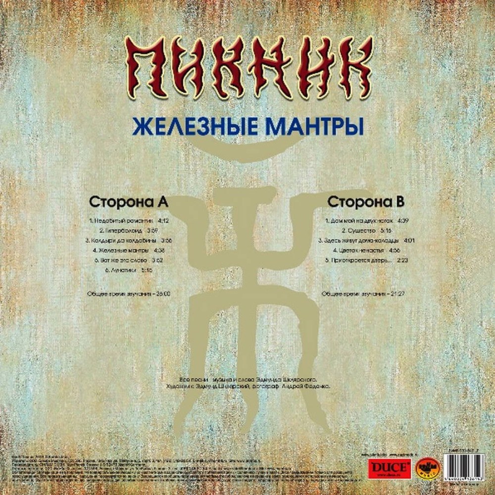 Альбом "Железные Мантры" — одна из самых выразительных и глубоких работ легендарной группы Пикник, ставшая важной вехой в отечественной рок-культуре. На сайте Panorama Records вы можете приобрести эту знаковую пластинку — подлинный артефакт эпохи, вобравший в себя философию и мистическую эстетику коллектива.