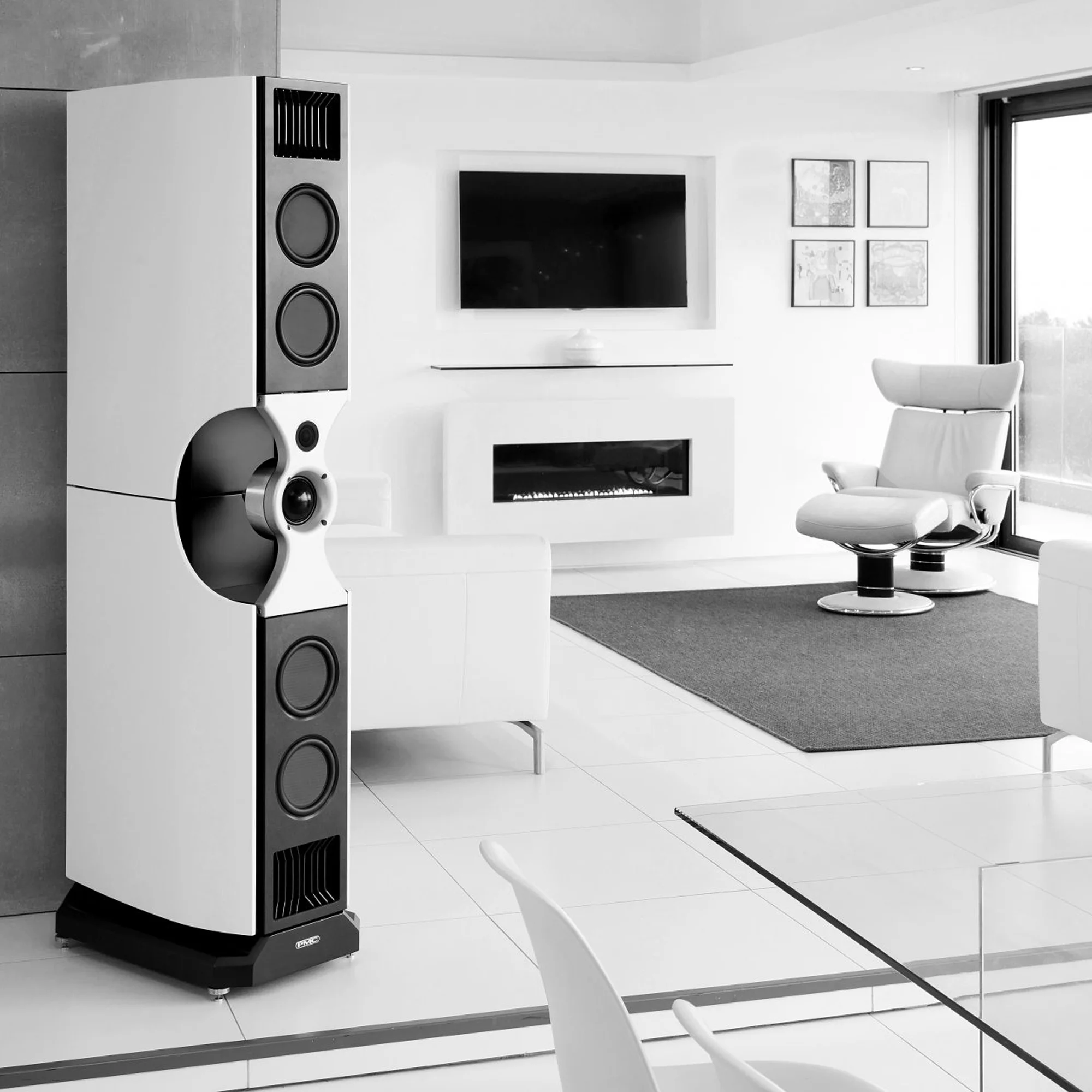 В кабинет установлено четыре 165-миллиметровых НЧ-динамика с диффузорами из плетеного углеволокна. Реализация технологии ATL выражается в оснащении каждой колонки двумя 2,4-метровыми лабиринтами с перегородками, обитыми звукоизолирующим материалом, обеспечивающим чистое и реалистичное звучание басов.