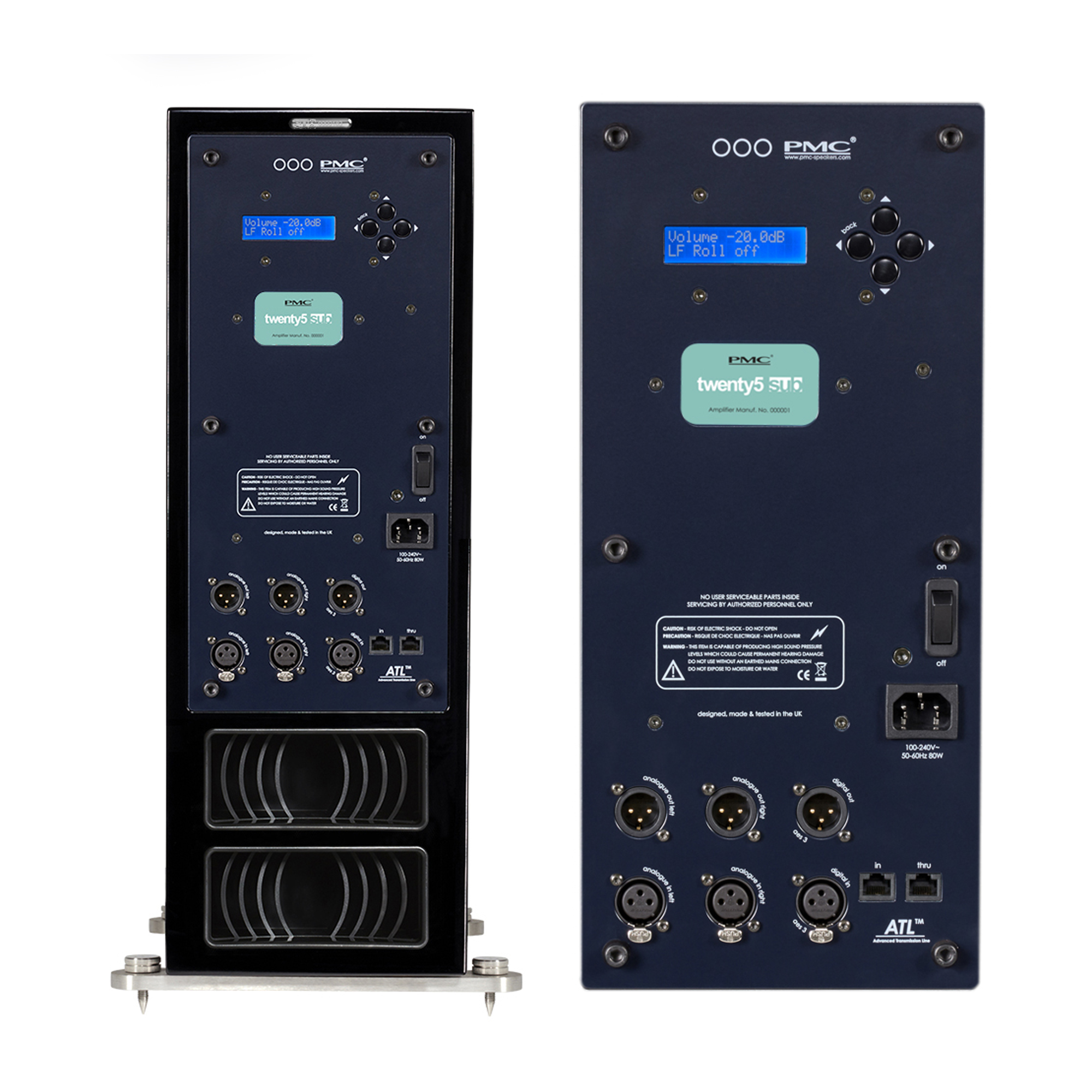 PMC Twenty5 Sub получил хорошо демпфированный узкий корпус с небольшим наклоном назад и черной глянцевой отделкой. Отверстия лабиринта ATL (с Laminair) выведены в его тыльную часть. На фасаде друг над другом установлены два 6.5-дюймовых вуфера с g-weave-диффузорами, способные «качать» бас вплоть до 22 Гц.