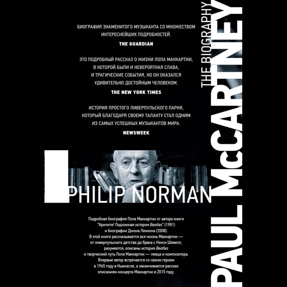 Автор биографии, Филип Норман, с беспрецедентной тщательностью и вниманием к деталям прослеживает путь Маккартни: от первых лет на Стоктон-роуд в Ливерпуле и судьбоносной встречи с Джорджем Харрисоном в школьном автобусе до выхода альбома New в 2014 году и масштабного мирового тура Out There в 2015-м.