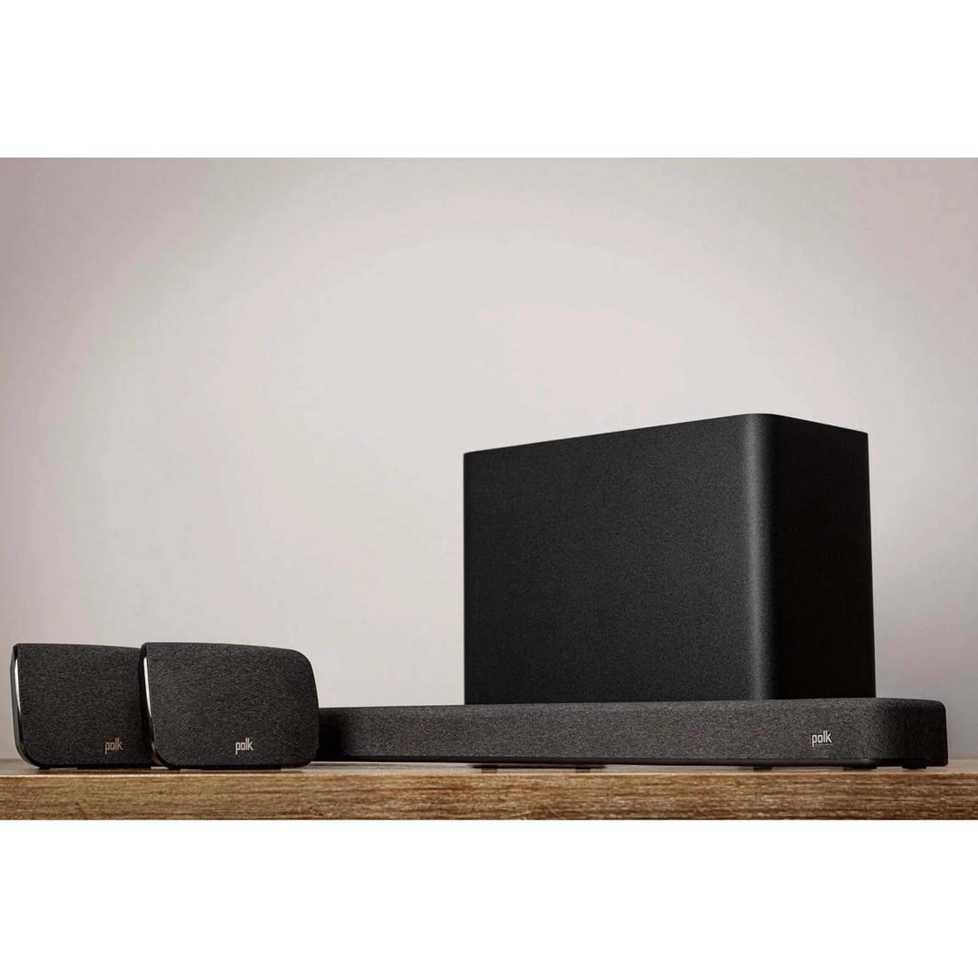 Создайте полноценную систему объемного звучания с помощью саундбара серии Polk React или MagniFi (приобретаются отдельно) и беспроводных колонок объемного звучания Polk Audio SR2.