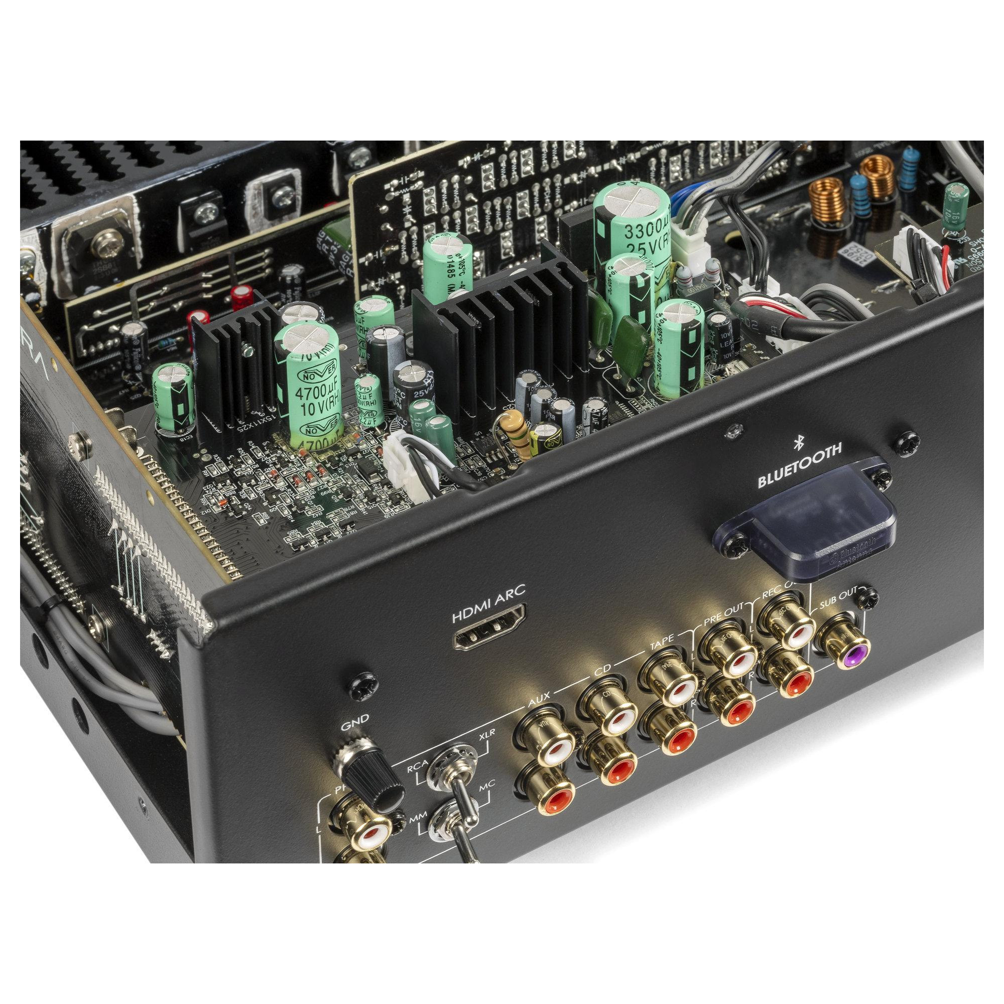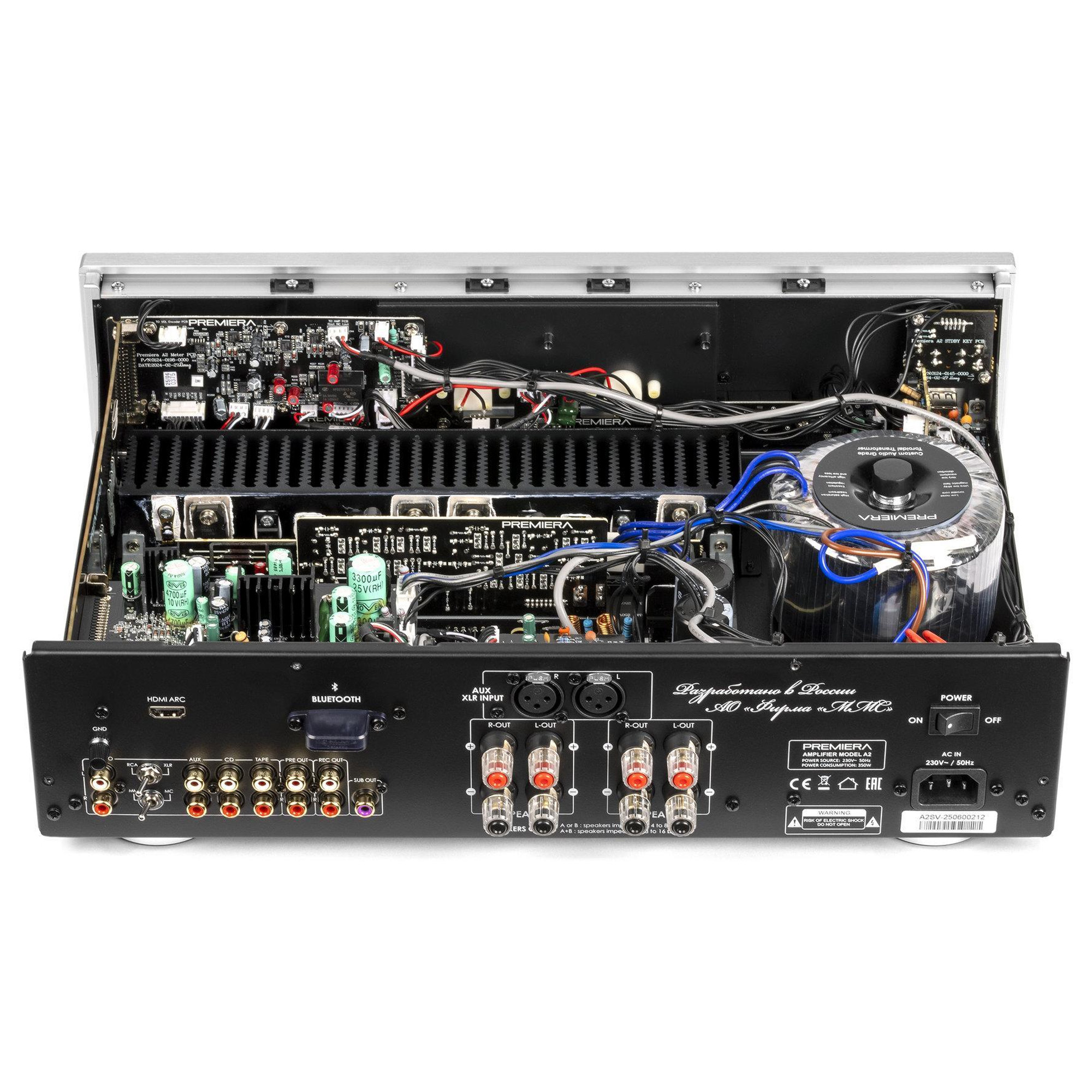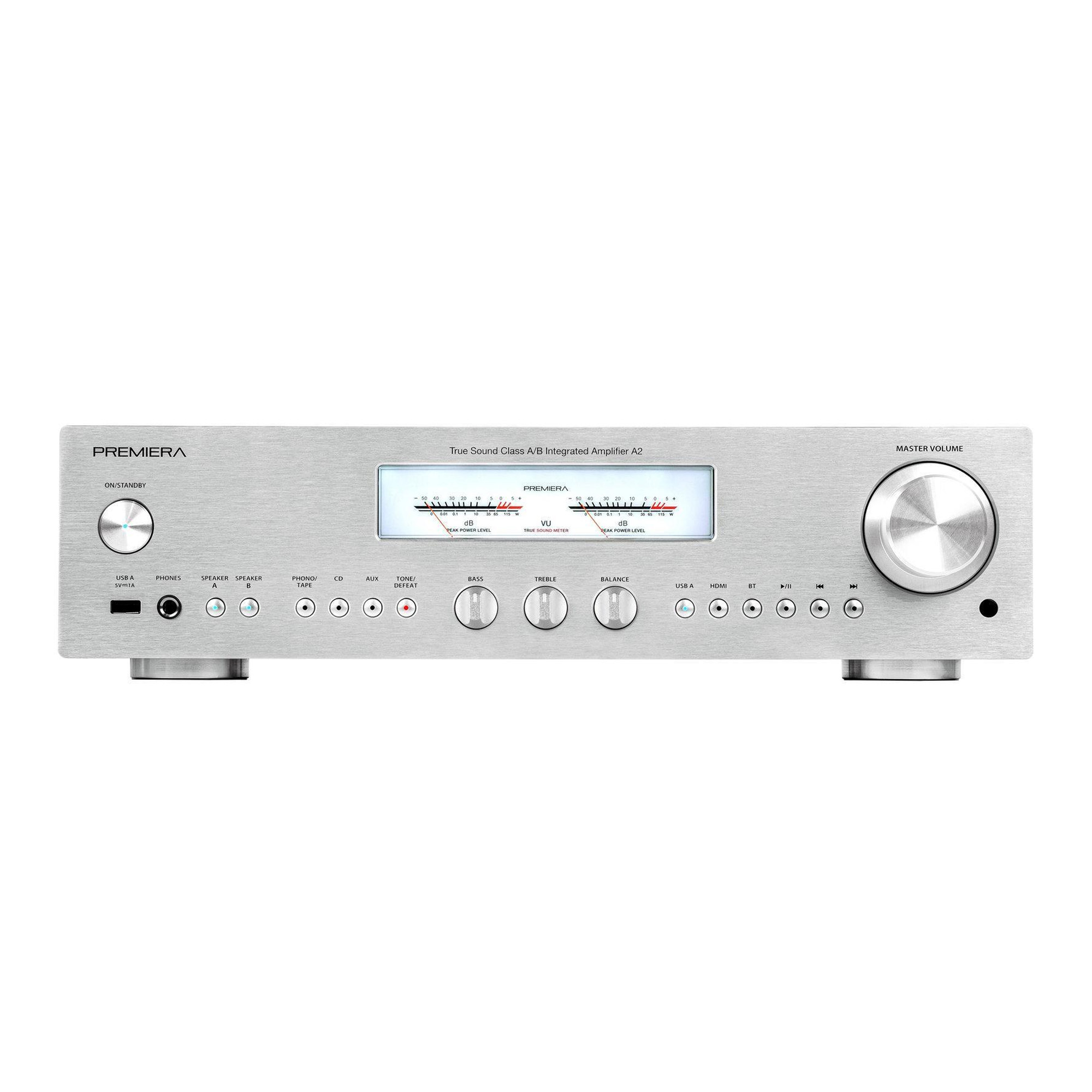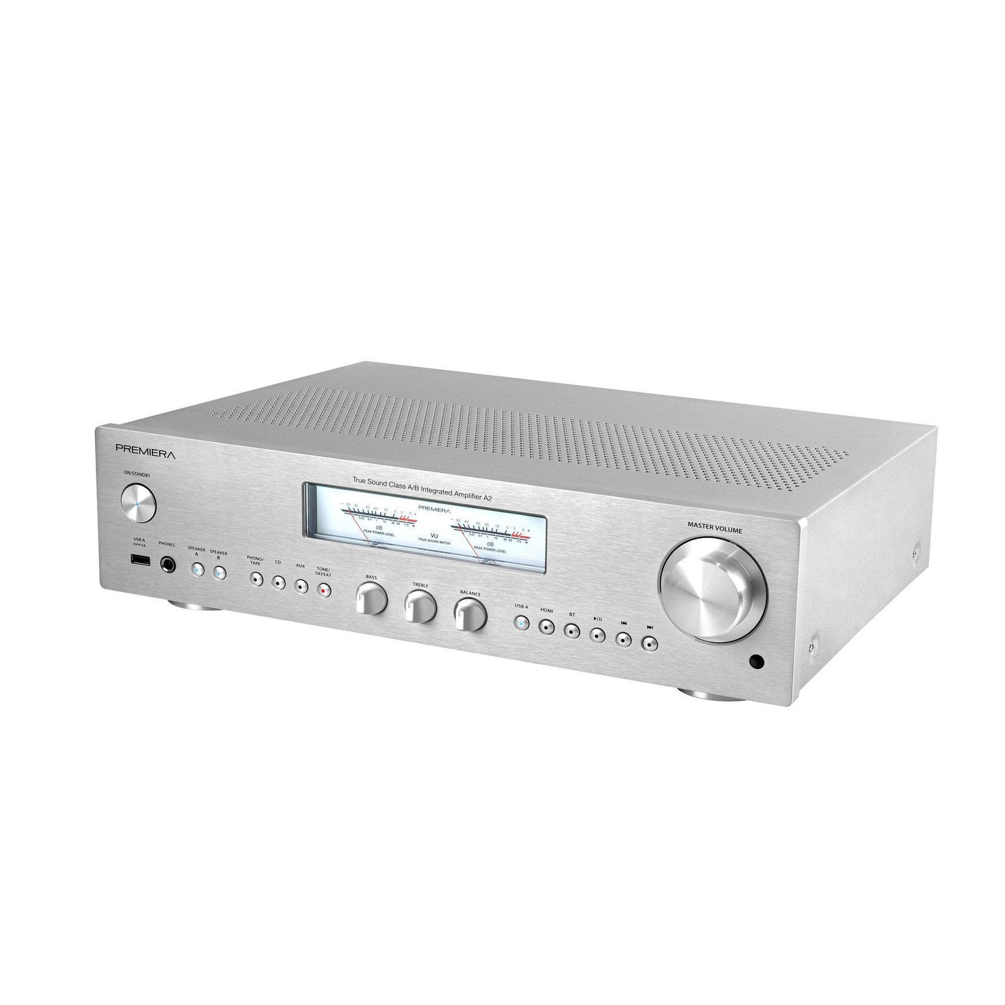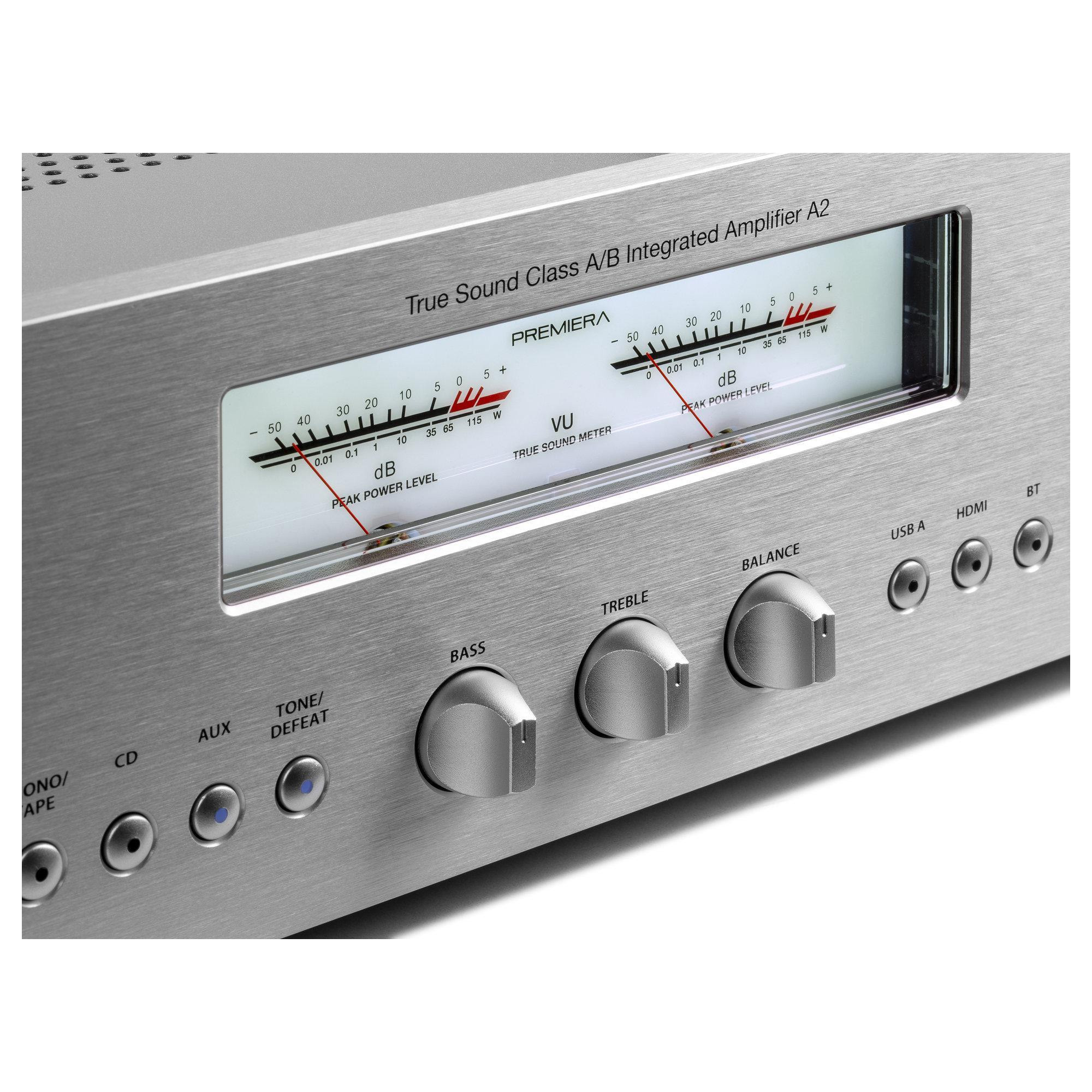 Premiera A2 - современный интегральный Hi-Fi стереоусилитель класса AB со встроенными MM/MC фонокорректором, Bluetooth и HDMI ARC, с номинальной выходной мощностью 55 Вт на канал.