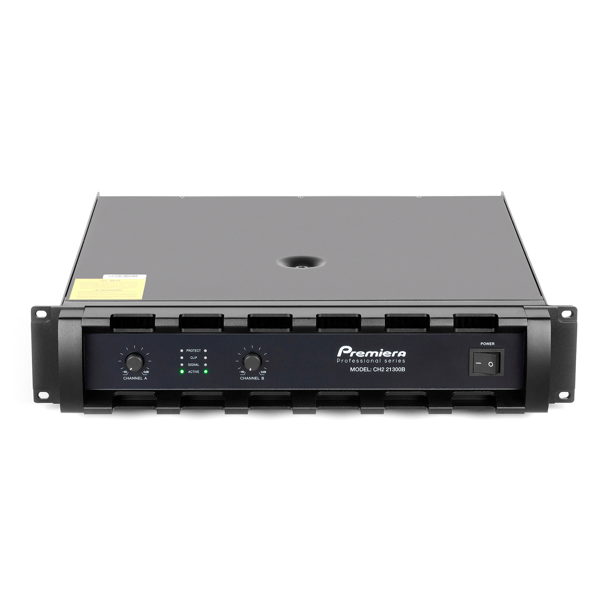 Premiera CH2 21300B – мощный двухканальный конфигурируемый усилитель мощности класса H с выходной мощностью 1300 Вт на канал при нагрузке 8 Ом предназначен для использования в профессиональных и домашних системах домашнего кинотеатра и в аудиосистемах в качестве оконечного усилителя.