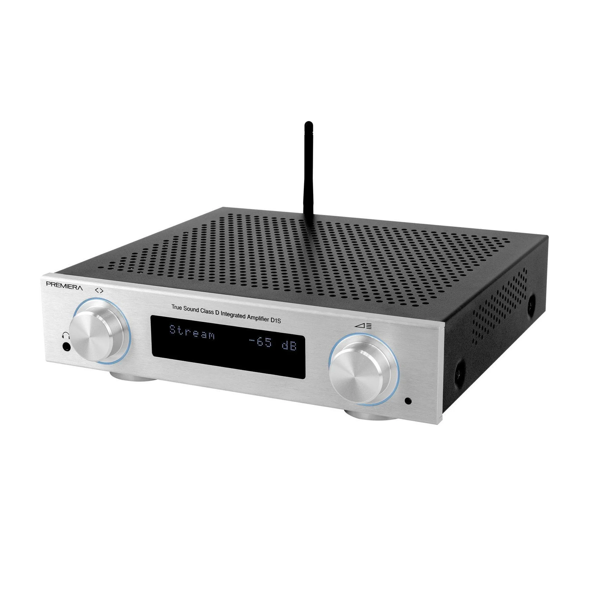 Premiera D1S – интегральный Hi-Fi стереоусилитель класса D со встроенными сетевым проигрывателем, ЦАП, Bluetooth aptX HD, HDMI ARC, USB, Wi-Fi, AirPlay 2, с номинальной выходной мощностью 101 Вт на канал (4 Ом), с возможностью подключения семи источников входного сигнала (два из них - аналоговые), и с тремя аналоговыми выходами – два стерео (регулируемым для внешнего усилителя и для наушников) и один моно (для активного сабвуфера).