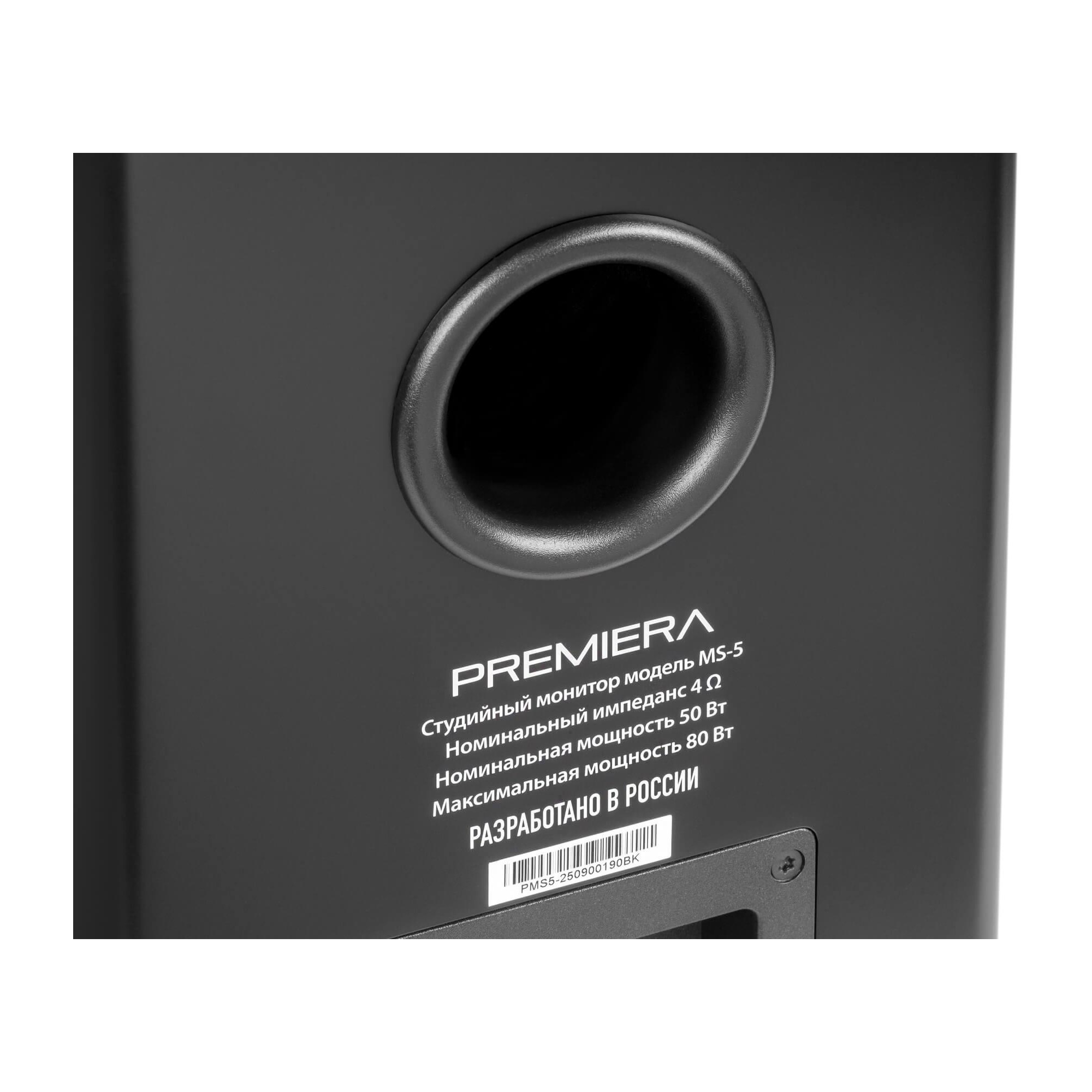 Premiera MS-5 «Studio 5» - полочные профессиональные акустические системы мониторного класса с феноменальной равномерностью звучания практически во всём диапазоне громкости. «Studio 5» предназначенные для использования в студиях звукозаписи, в качественных Hi-Fi-стереосистемах и в многоканальных системах домашнего кинотеатра любых конфигураций.