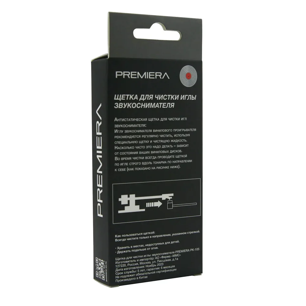 PREMIERA PK-105 - отличное средство для быстрой и эффективной очистки от пыли. Используемое в ней карбоновое волокно имеет идеальные параметры: оно тоньше и жестче волоса человека. Антистатическая щетка для иглы звукоснимателя со щетиной из карбонового волокна подходит для всех моделей звукоснимателей.