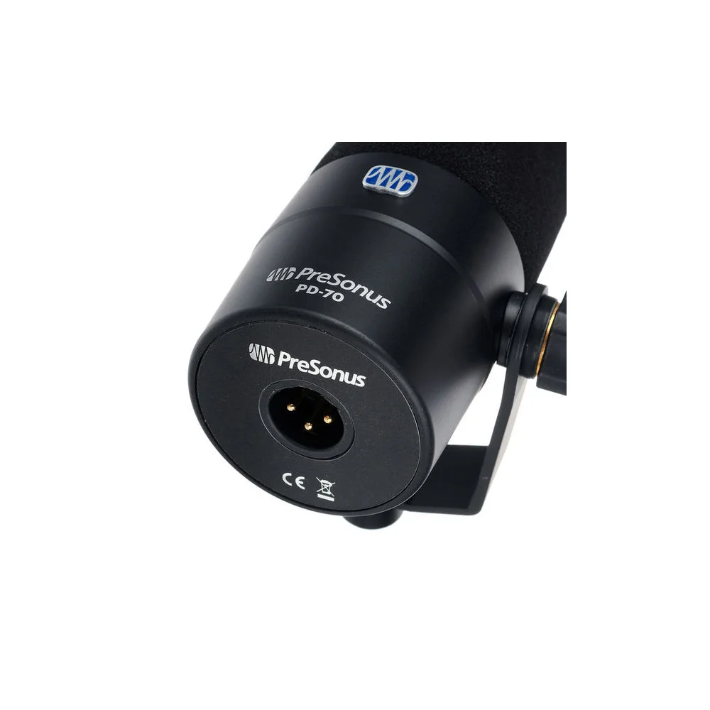 PreSonus PD-70 заключен в стильный металлический корпус черного цвета. Большая его часть покрыта ветрозащитой, изготовленной из пеноматериала. В корпус также встроено жесткое крепление. Диапазон частот, воспроизводимых моделью, составляет от 20 до 20 000 Гц. Микрофон идеально совместим с любыми микрофонными предусилителями и аудиоинтерфейсами.