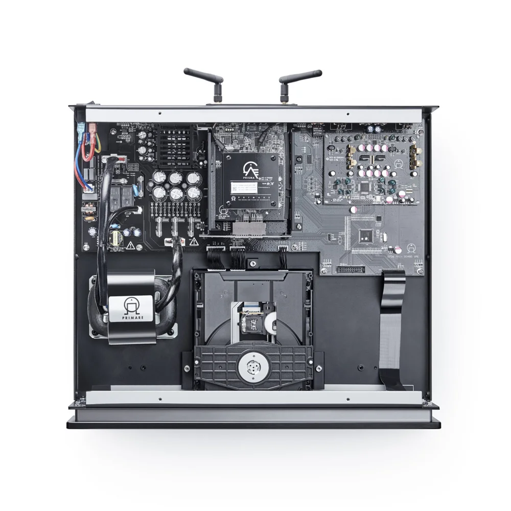 Каждый из основных узлов CD35 Prisma, будь то CD-привод, ЦАП, реализация выходного каскада, сетевой модуль с поддержкой технологии Prisma, сочетает в себе все возможные плюсы: совместимость, универсальность взаимодействия и эргономику, что по праву делает этот источник абсолютным лидером среди цифровых музыкальных проигрывателей Primare.