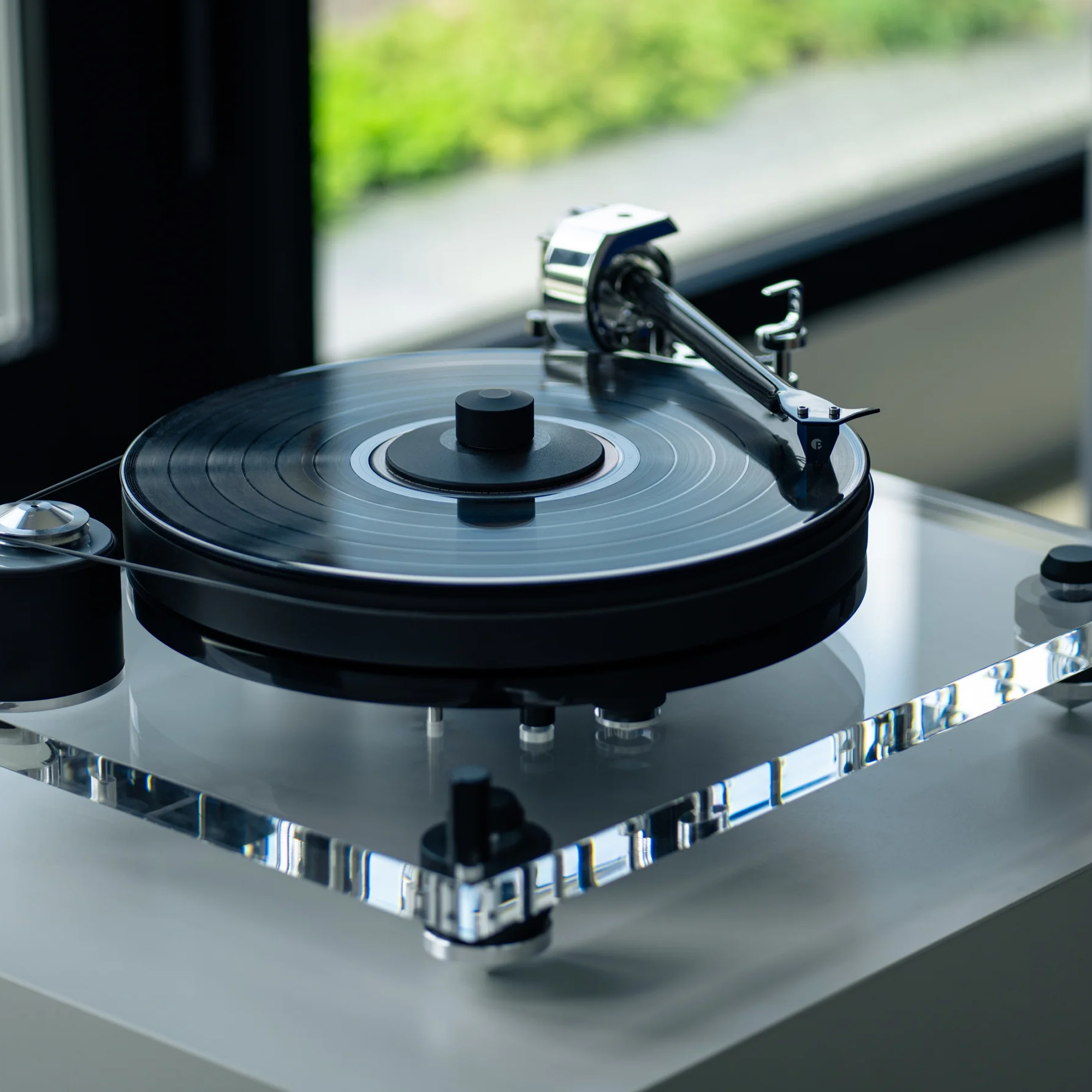 Массивный опорный диск изготавливается из MDF. На диск наносят демпфирующее покрытие из винила, которое устраняет нежелательные резонансы. Диск опирается на подшипник, а шарик подшипника изготавливается из керамики. В результате, проигрыватель работает плавно и бесшумно.