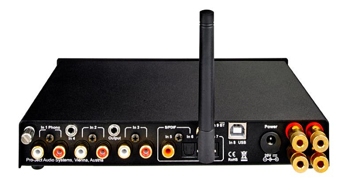 Усилитель Pro-Ject MaiA можно использовать в качестве внешнего ЦАПа, так как он оснащен цифро-аналоговым преобразователем Cirrus Logic CS4344 (24 бит/192 кГц). На борту присутствует Bluetooth-модуль с кодеком aptX.