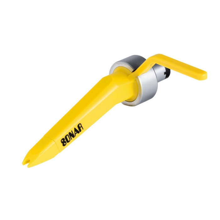 Стол проигрывателя изготовлен из МДФ и вырезан в форме известной желтой подводной лодки. Ближе к хвосту крепится S-образный тонарм с картриджем Ortofon Concorde в желтой версии Sonar, созданной специально для этого проекта. Сам тонарм изготовлен из алюминия и вращается на сапфировом подшипнике. Диск проигрывателя стеклянный и прозрачный, под ним видно желтый субдиск, который вращает пассик. Переключатель скорости ручной, доступны 33 и 45 оборотов. О виброизоляции разработчики тоже позаботились, поставив проигрыватель на специальные антивибрационные ножки.