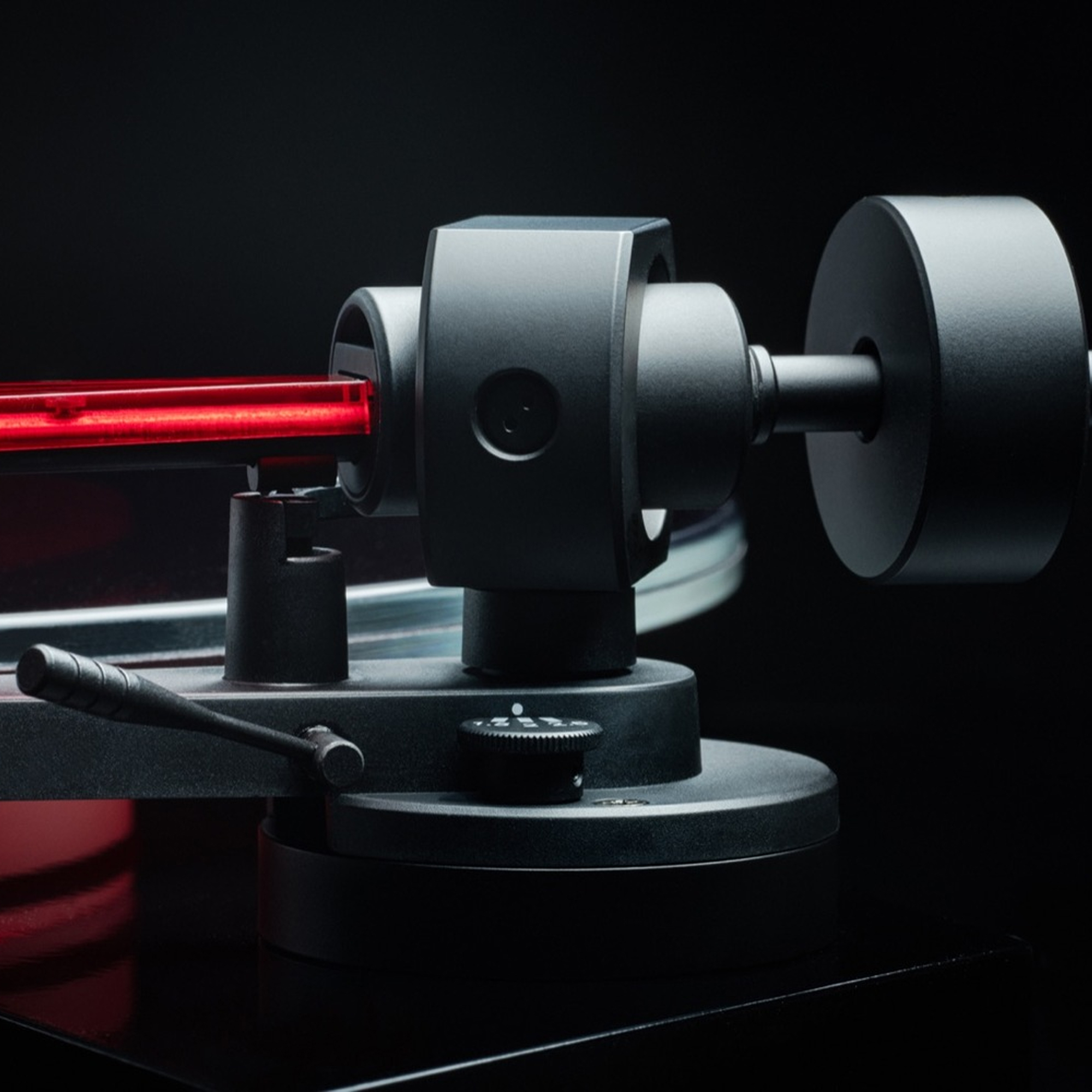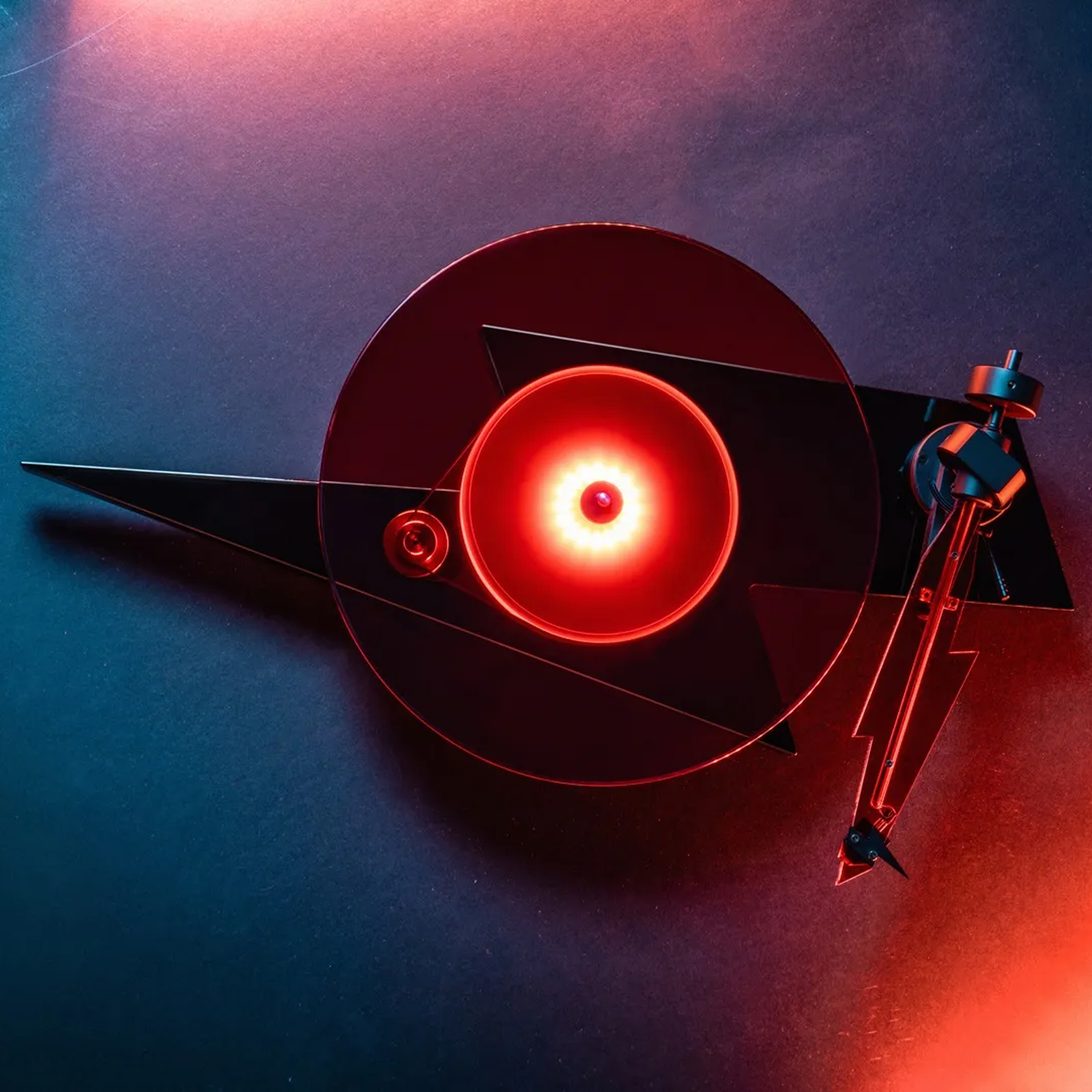 Опорный диск изготовлен из массивного красного стекла толщиной 10 мм, что обеспечивает нулевой резонанс и исключительную стабильность скорости. Ее большая масса обеспечивает более плотное и точное воспроизведение, обеспечивая при этом поразительную визуальную привлекательность. В дополнение к эффекту, новая прецизионная акриловая подставка подсвечивается красной светодиодной подсветкой, что делает этот проигрыватель таким же захватывающим, как и музыка, которую он воспроизводит.