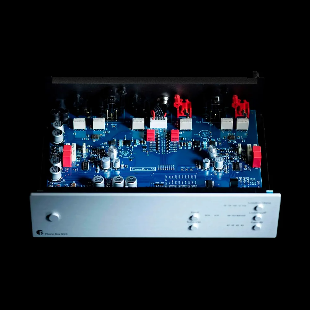 Для повышения качества звука Pro-Ject Phono Box S3 B выполняют на дискретных компонентах по принципу двойного моно. Это обеспечивает минимальный уровень искажений и широкую стереокартину. Кнопки управления фонокорректором размещают на передней панели. Это сделано впервые в модели серии S и значительно упрощает настройку устройства. Предусмотрена возможность выбора входного сопротивления и емкости, а также переключение усиления. Установленные параметры отображаются миниатюрными светодиодами. Фонокорректор оснащен отключаемым фильтром инфранизких частот (Subsonic-фильтр).