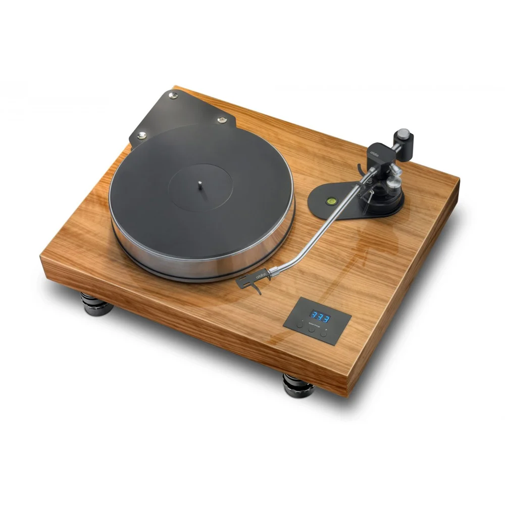 20-килограммовый корпус данной модели изготовлен из MDF, отделан натуральным шпоном и покрыт глянцевым лаком. В качестве демпфирующего наполнителя используется металлический гранулят. Четыре регулируемые магнитные ножки основания обеспечивают эффективную развязку с поверхностью. Имеется встроенный в основание жидкостный пузырьковый уровень, позволяющий наиболее точно отрегулировать положение проигрывателя относительно поверхности, на которую он устанавливается.